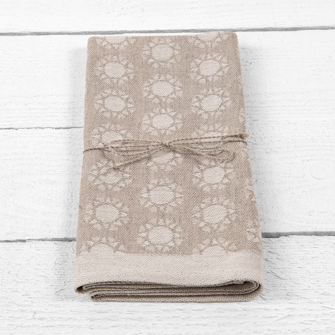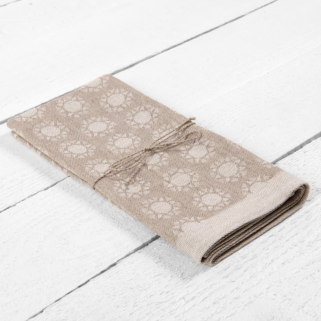 • pellavapuuvillainen keittiöpyyhe, valkoinen ja luonnollinen aurinkokuvio