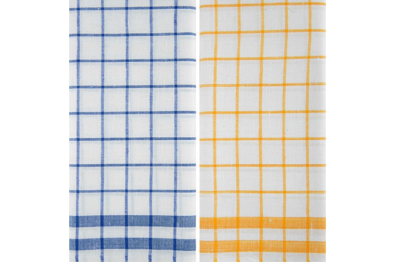 • Pellavapuuvillainen keittiöpyyhesarja, ruudullinen valkoinen ja sininen/keltainen