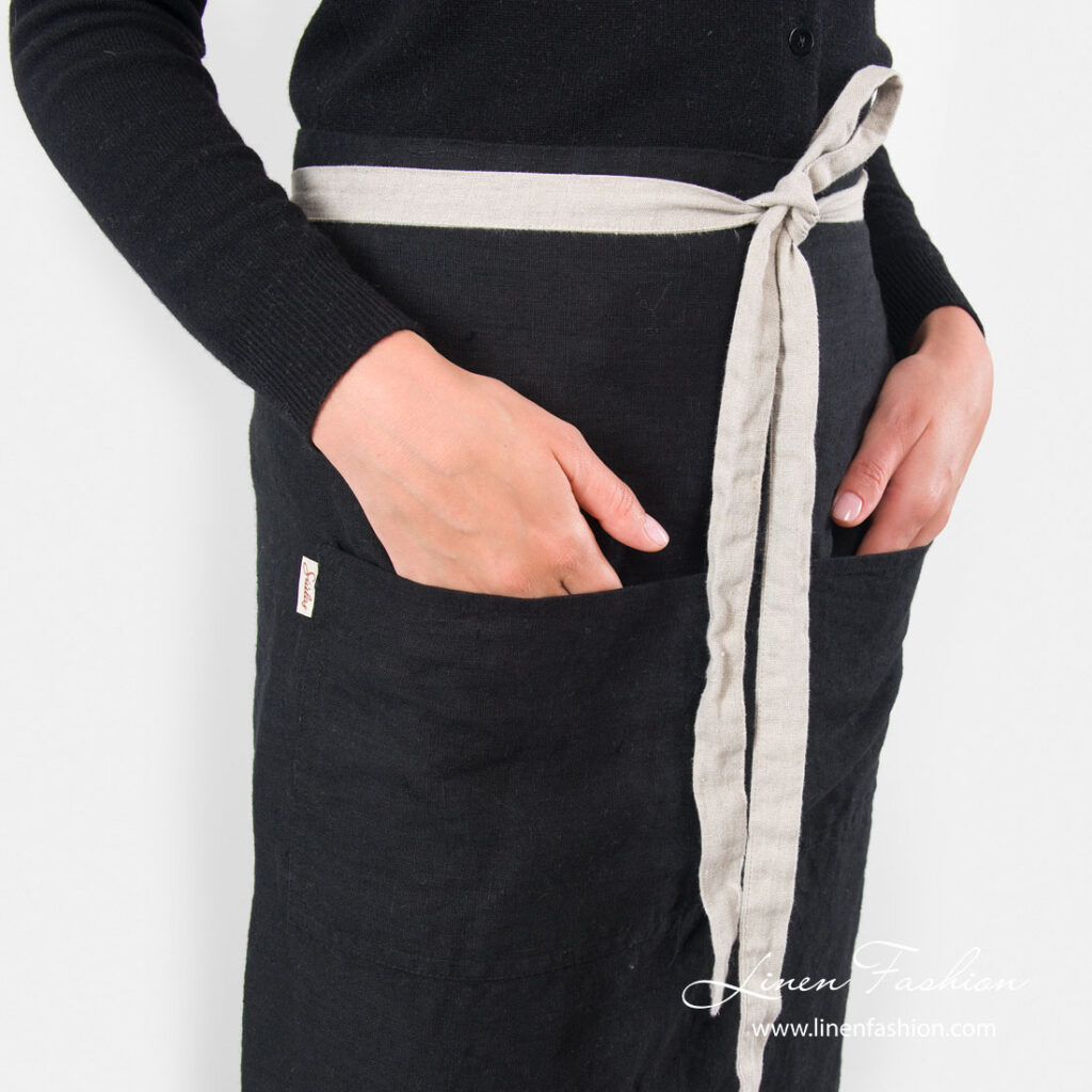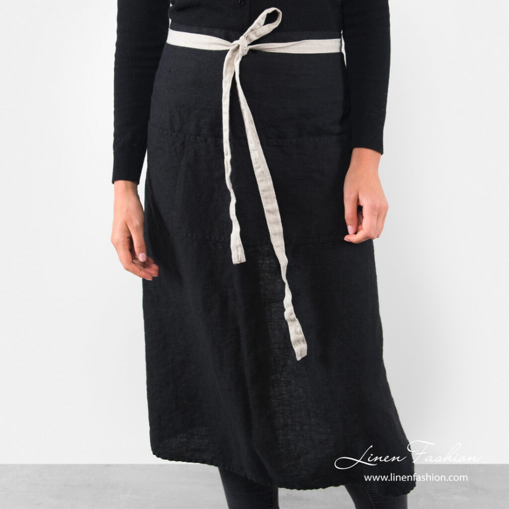 - Yksityiskohdat: kaksi etutaskua, luonnonvärinen pellavainen vyötärönauha
