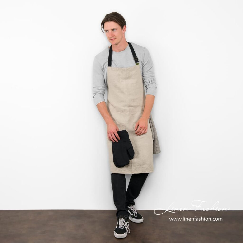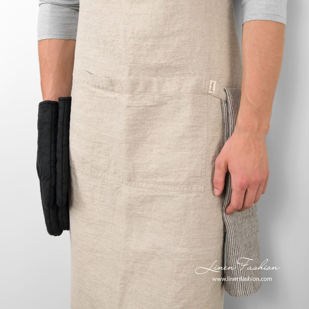 Huomautus:tämä esiliina sopii sekä naisille että miehille. Tuote on valmistettu erikoispestystä kankaasta, koko voi vaihdella hieman. Tämä tuote on valmistettu luonnonpellavaisista (värjäämättömistä) langoista, joten kankaan sävy voi poiketa hieman kuvasta. Sävyeroja voi esiintyä eri erien välillä.