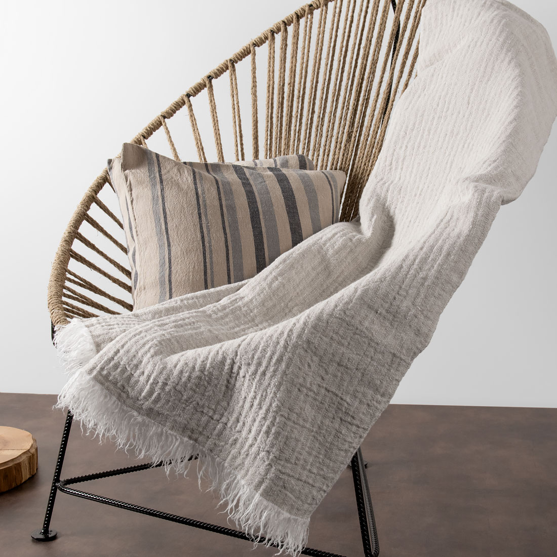 Huomautus: Tuote on valmistettu pestystä kankaasta, joten sen koko voi hieman vaihdella. Olemme käyttäneet tämän kankaan valmistuksessa luonnollista, värjäämätöntä (luonnonharmaata) pellavalankaa. Luonnonharmaa väri voi olla joka kerta erilainen (tämä riippuu pellavan kasvuolosuhteista), joten tilaamasi kangas voi poiketa hieman kuvasta. Väripoikkeamia voi esiintyä myös uusintatilauksissa.