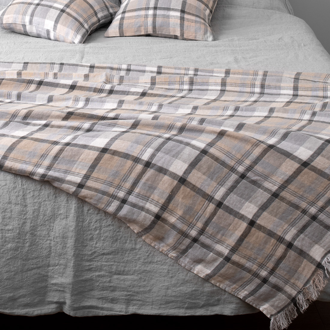 • ALASKA vaaleanharmaa pellava vuodevaatteet ja JARA harmaa huopa