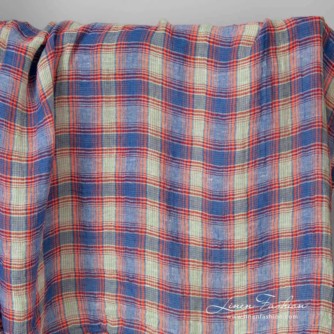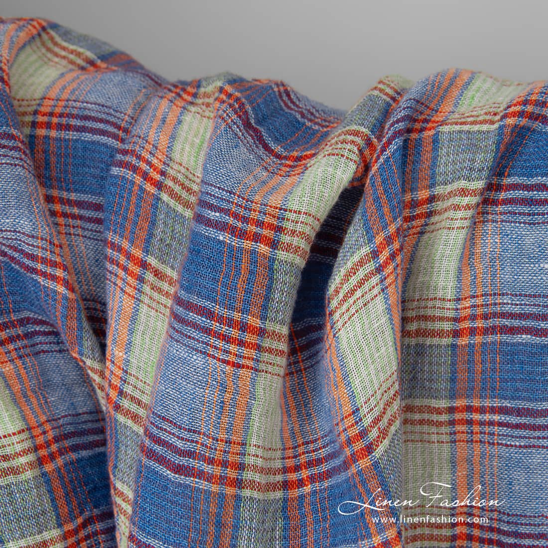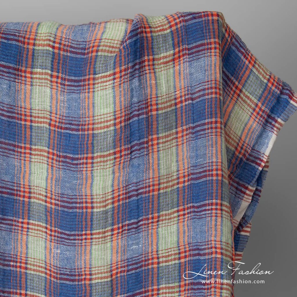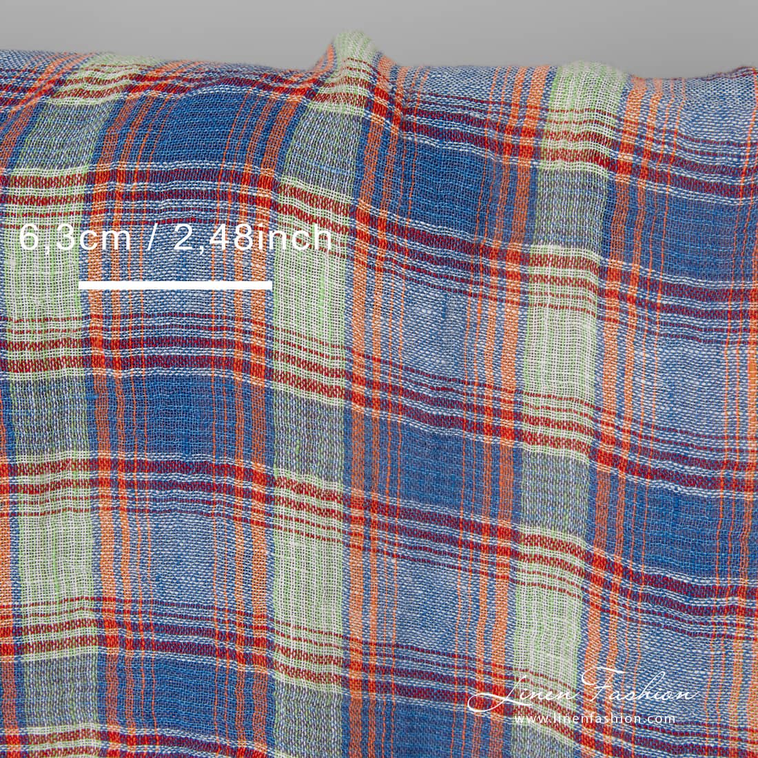 Kevyt pesty monivärinen ruudullinen pellavakangas
