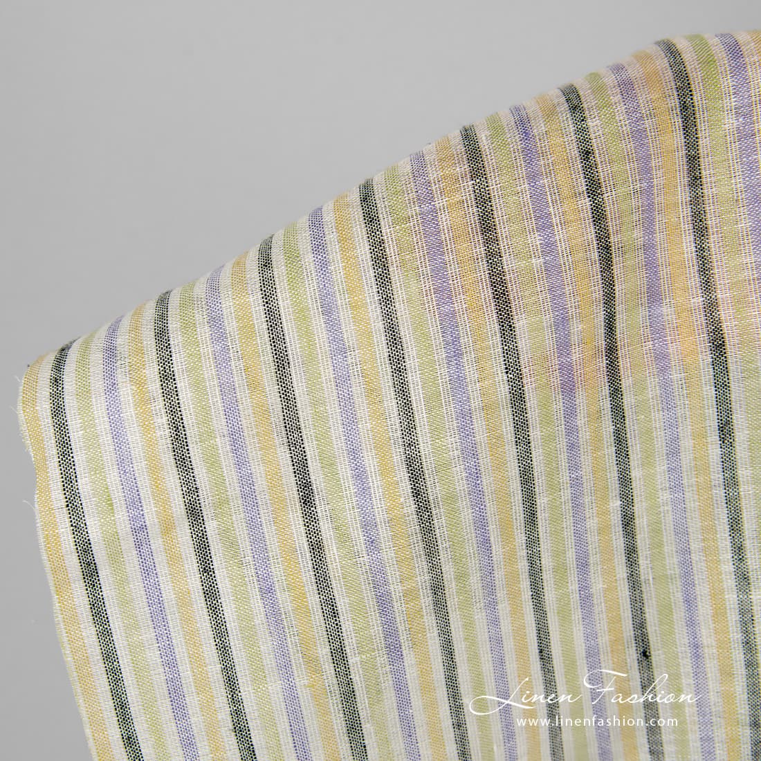 Pellavakangas keltaisilla, sinisillä ja vihreillä raidoilla