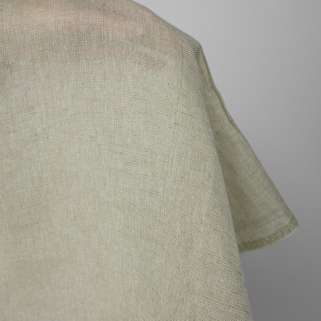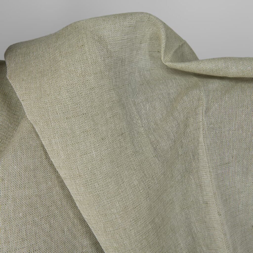 Pellavapuuvillakangas valkoinen ja oliivinvihreä meleeraus