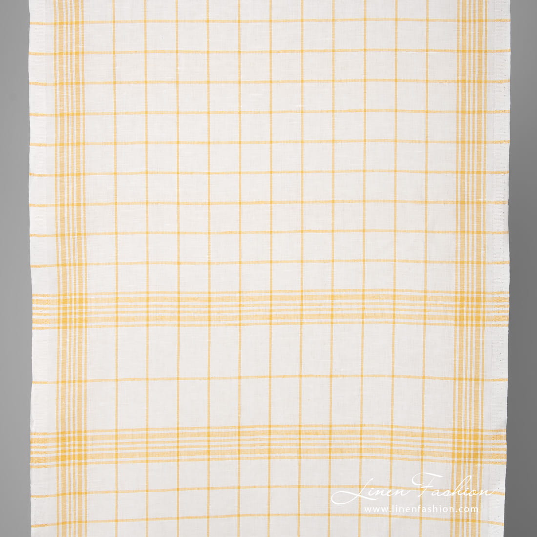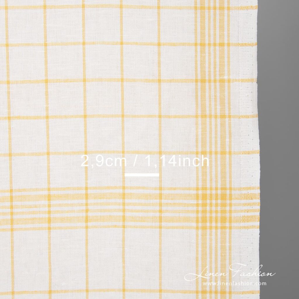 Valkoinen pellavapuuvillakangas keltaisilla ruuduilla