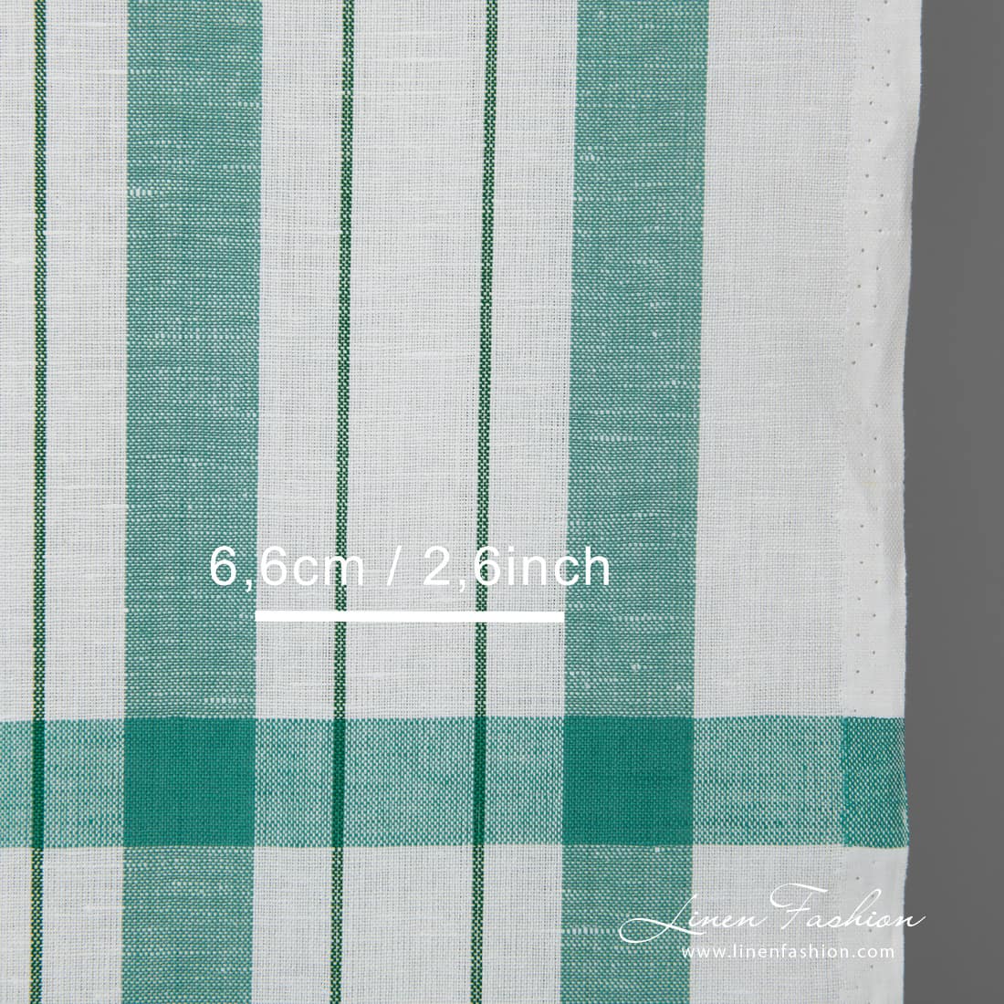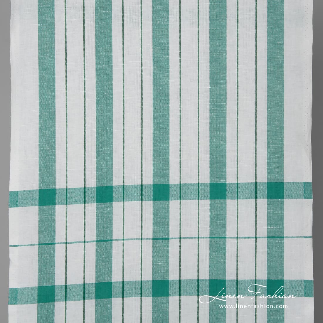 Valkoinen pellavapuuvillakangas vihreillä raidoilla