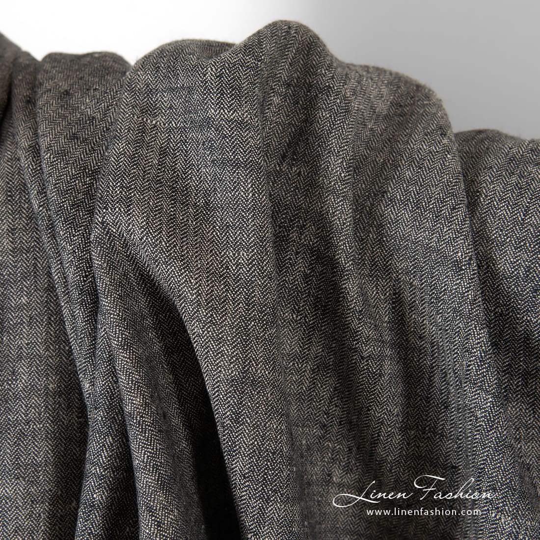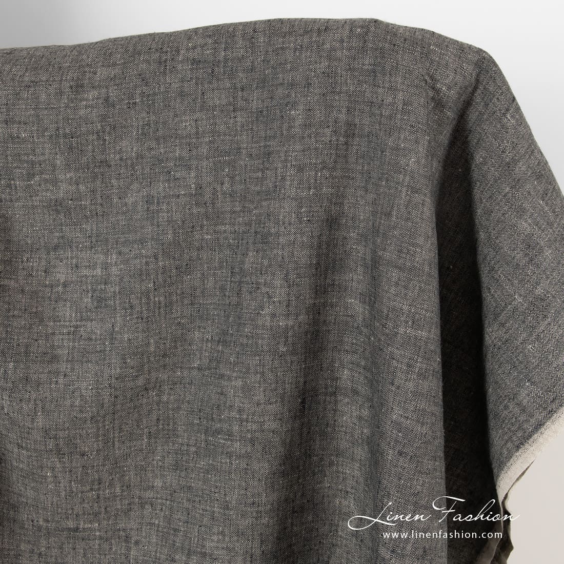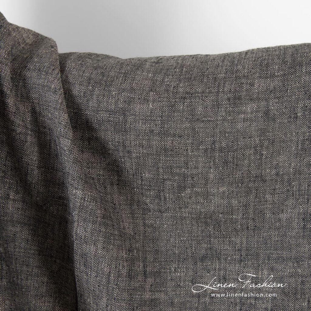 Kalanruotokuvioinen pellavakangas mustana ja luonnonvärisenä