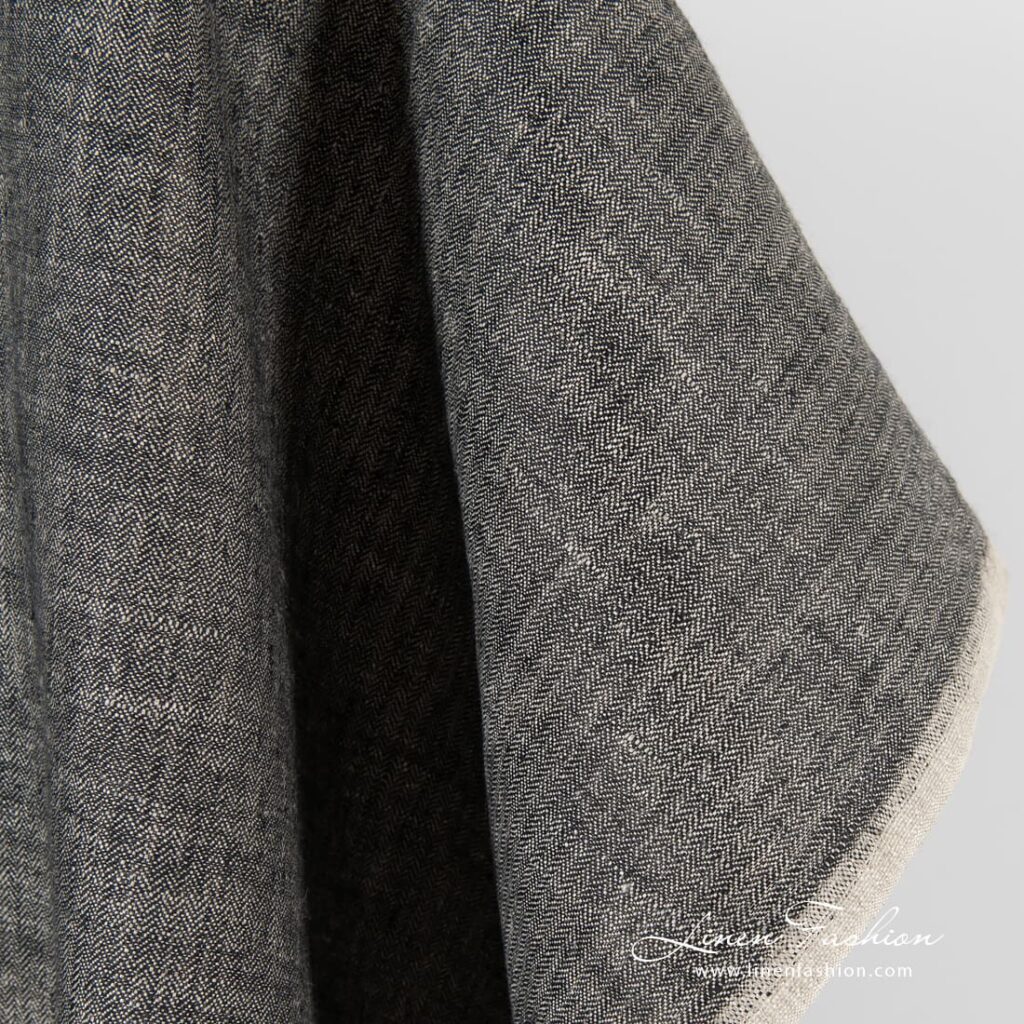 - Väri: mustan ja luonnonvärisen pellavan (värjäämätön, ruskeanharmaa) lankojen sekoitus