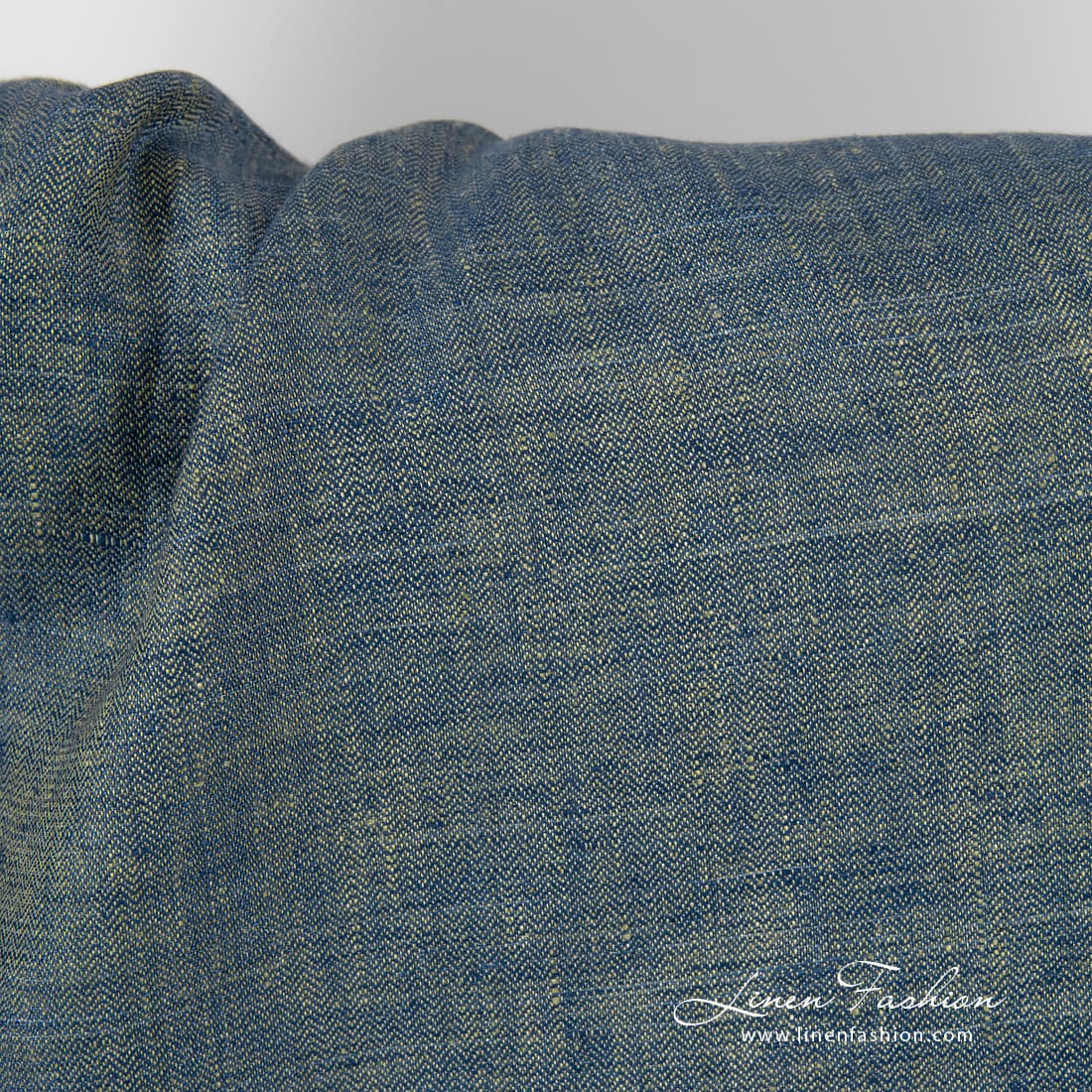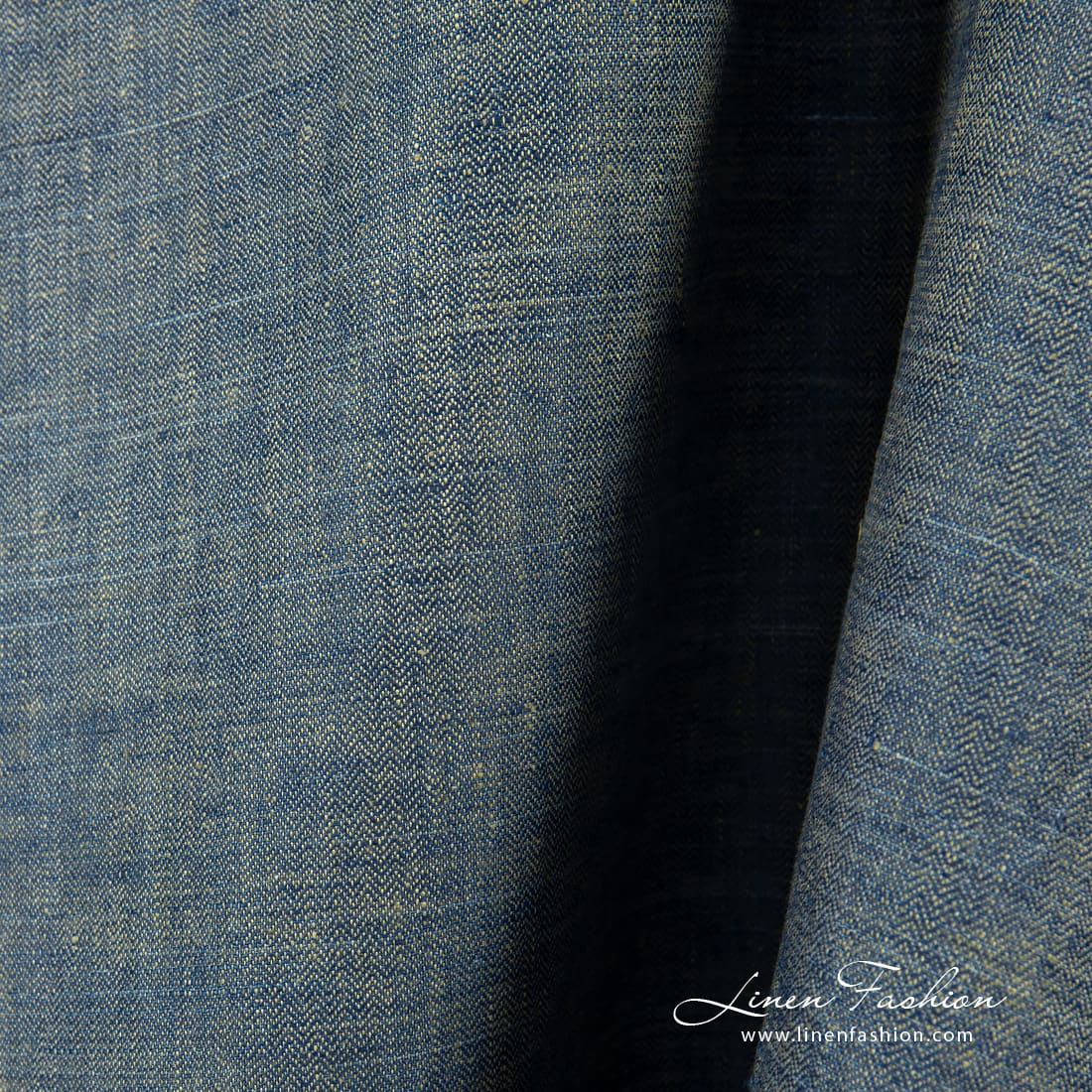 Kalanruotokuvioinen pellavakangas, oliivinvihreä ja tummansininen