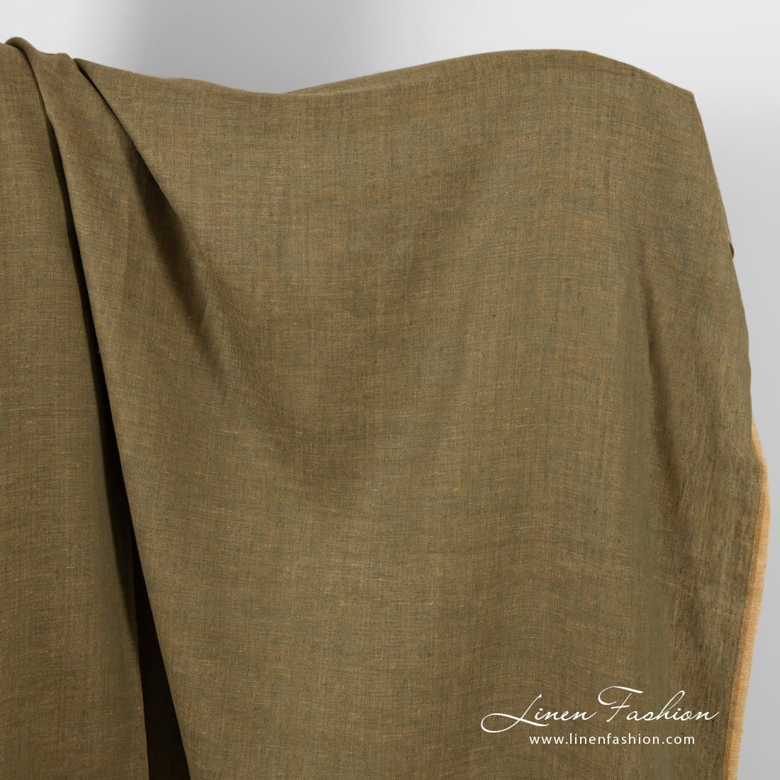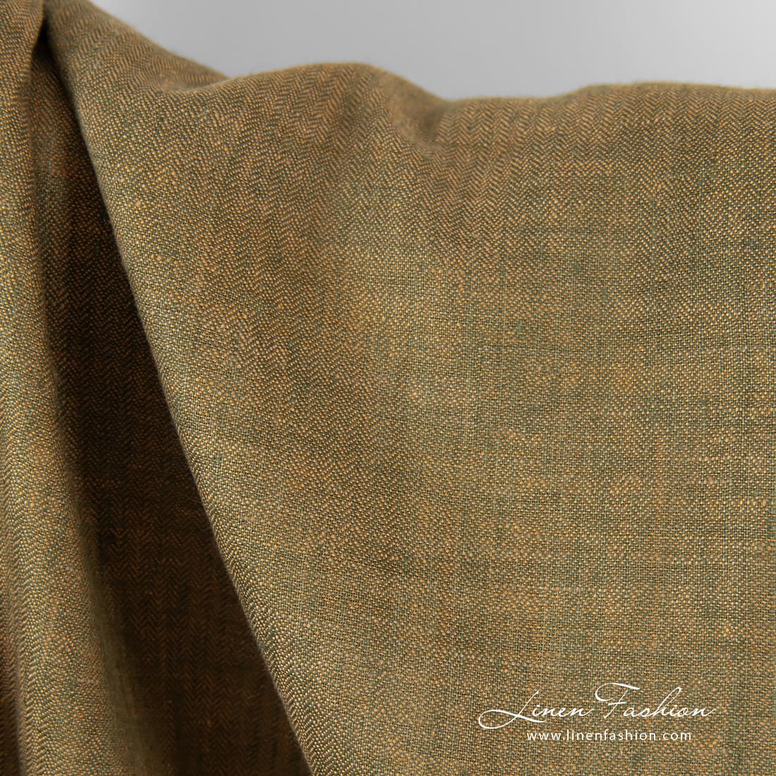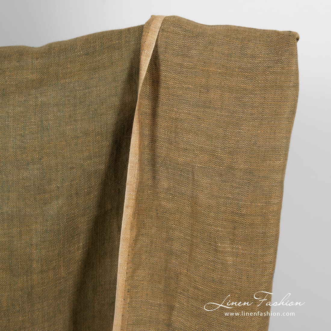 Kalanruotokuvioinen pellavakangas, ruskea ja tummanvihreä