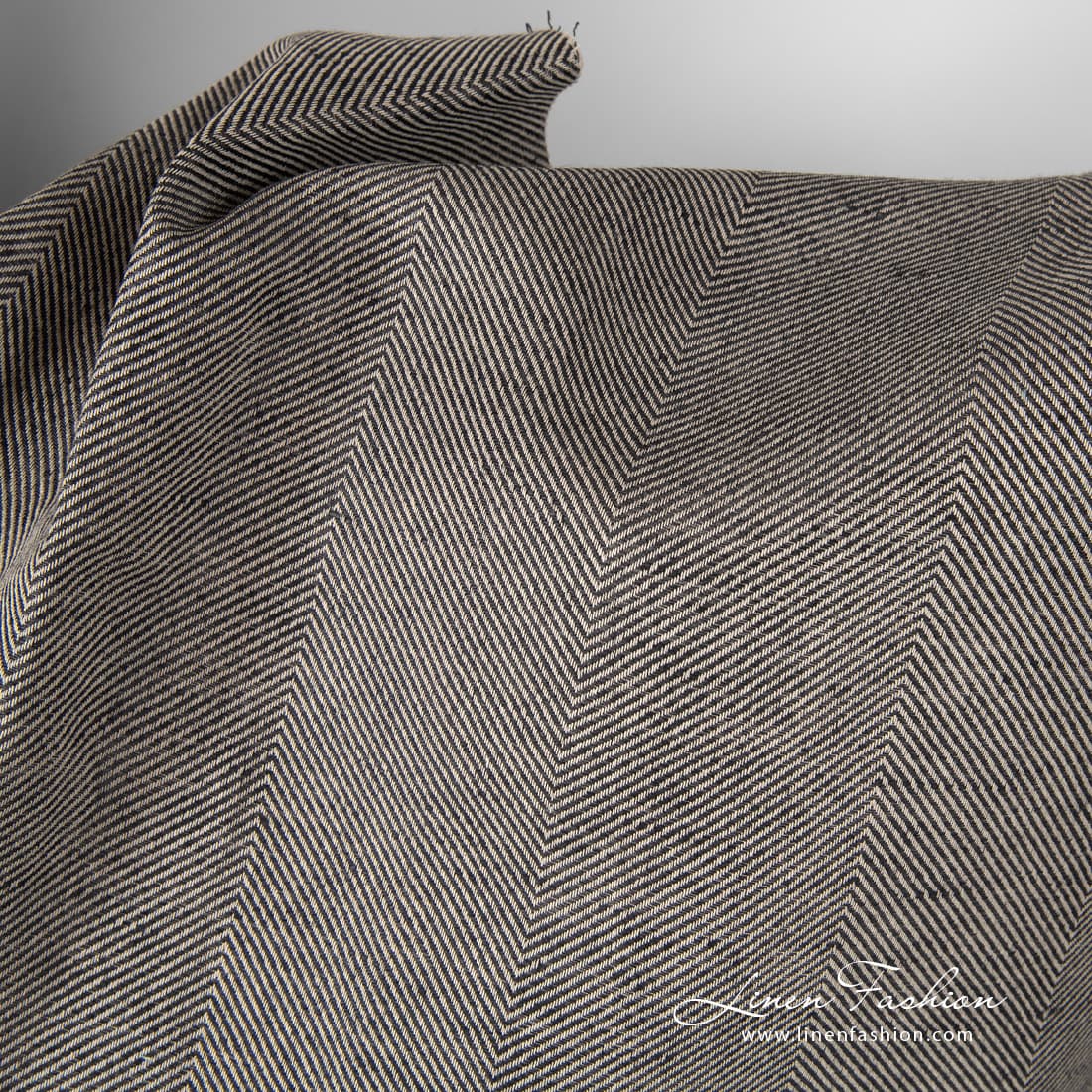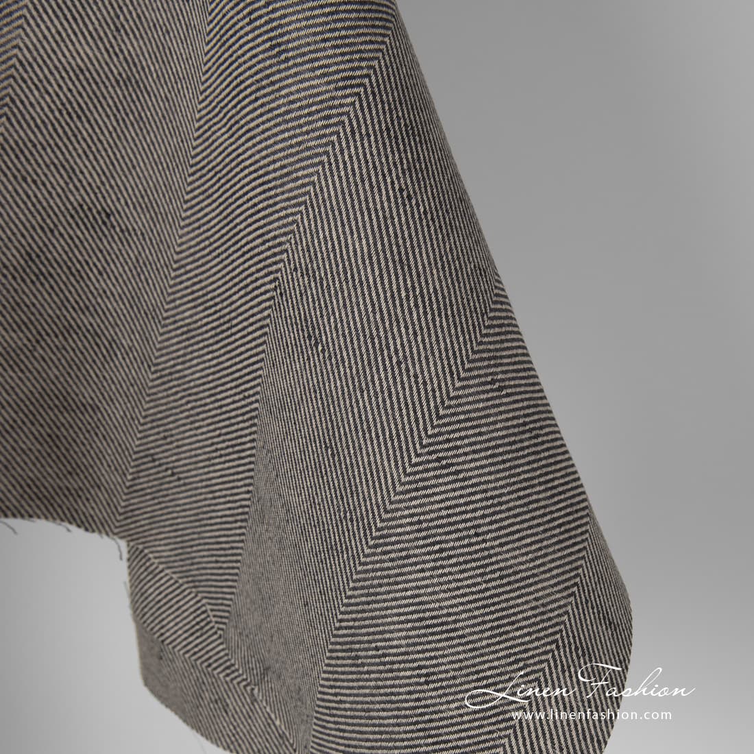 Pellavapuuvillakangas leveällä kalanruotokuviolla