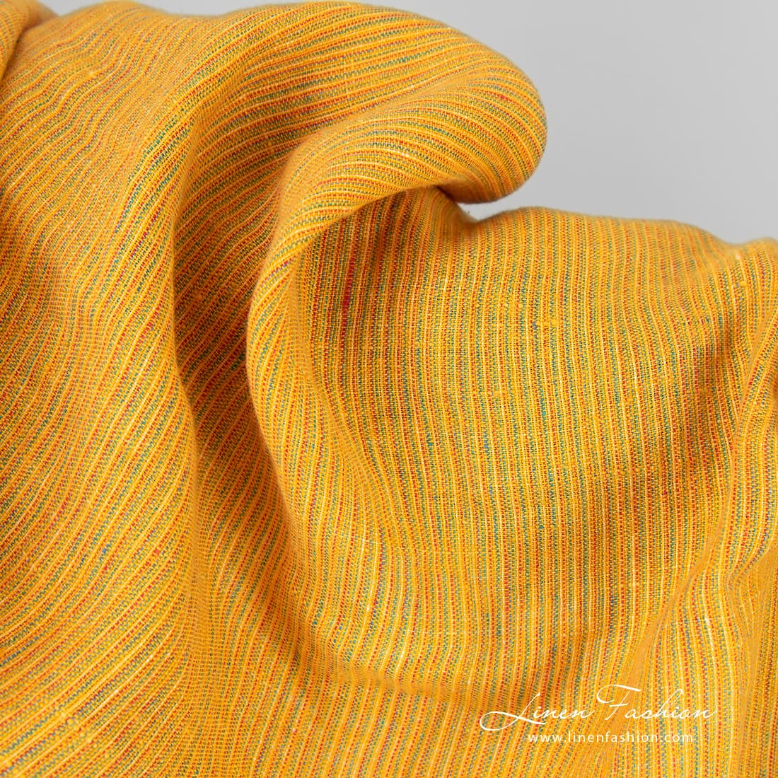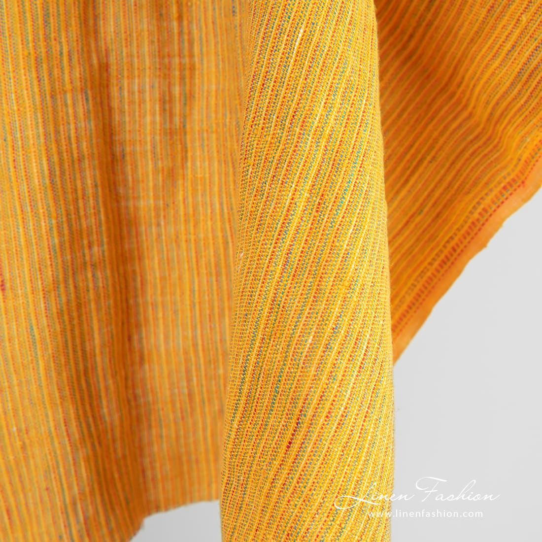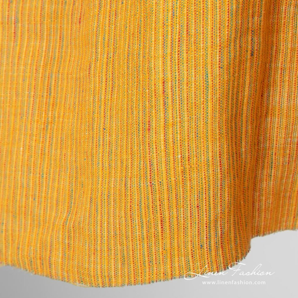 Pesty keltainen monivärinen raidallinen pellavakangas