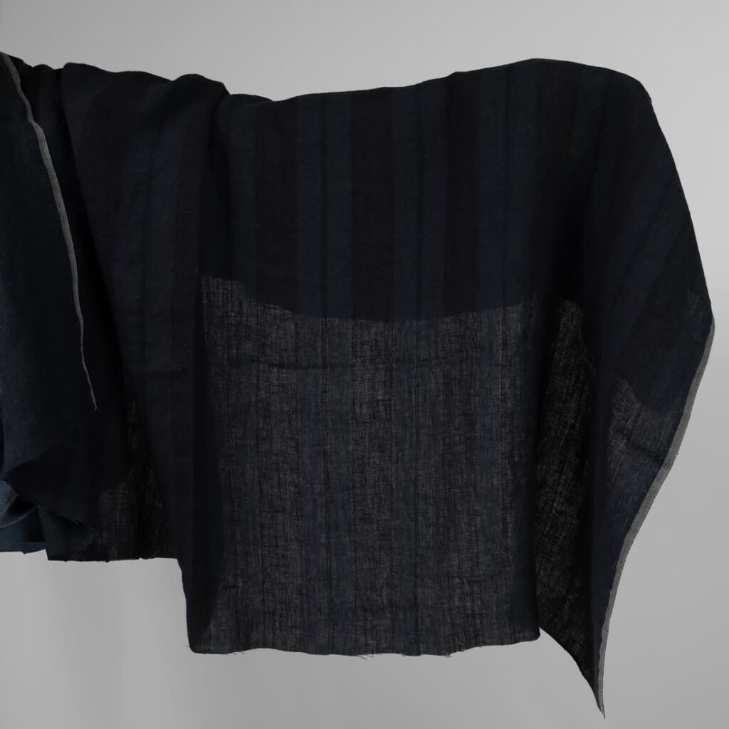 Pesty pellavakangas, mustat ja tummansiniset raidat