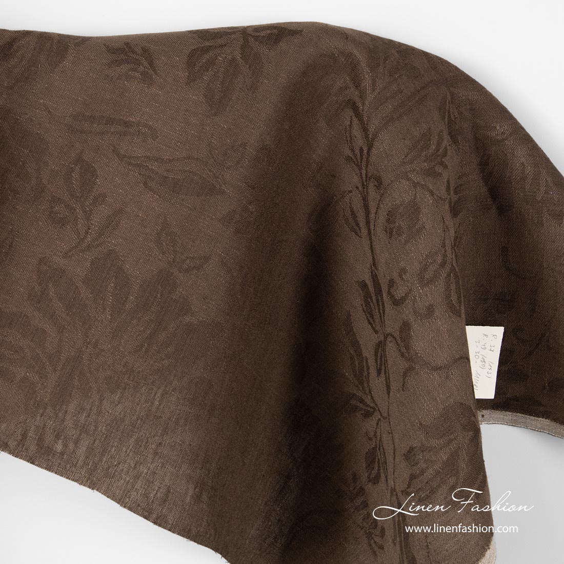 Ruskea jacquard-pellavakangas kukkakuviolla