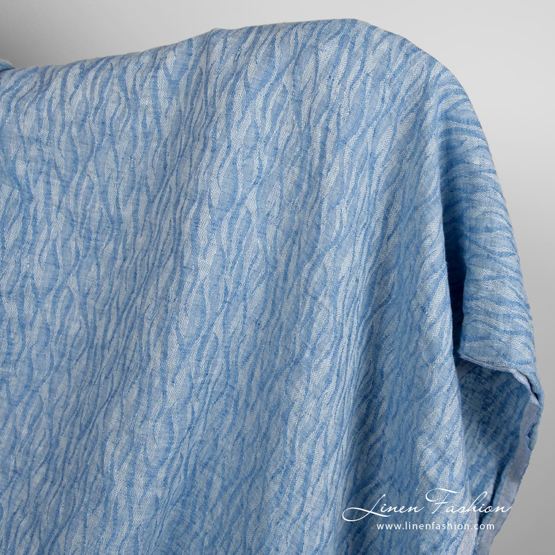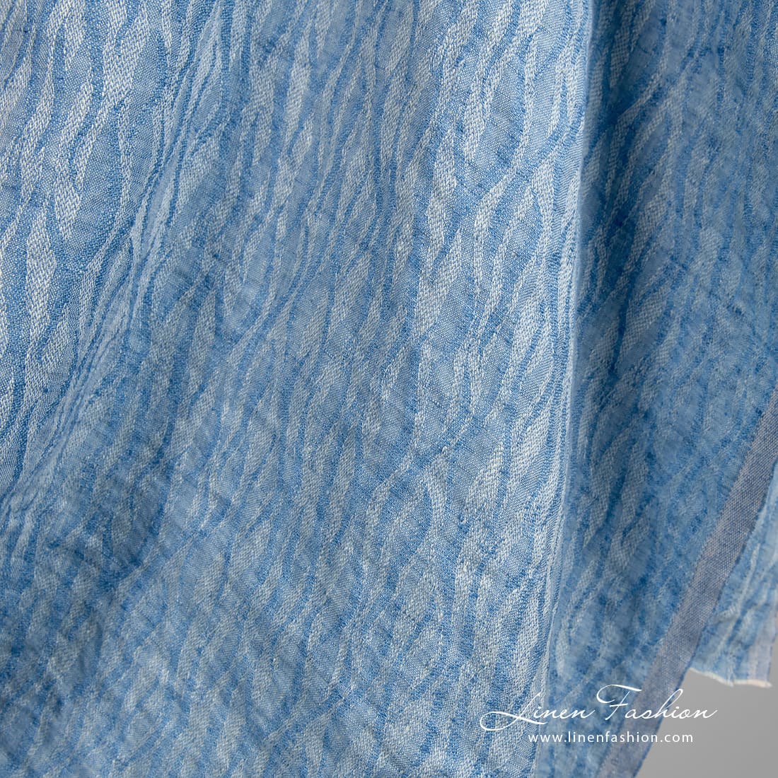 Sininen jacquard-pellavakangas, pesty