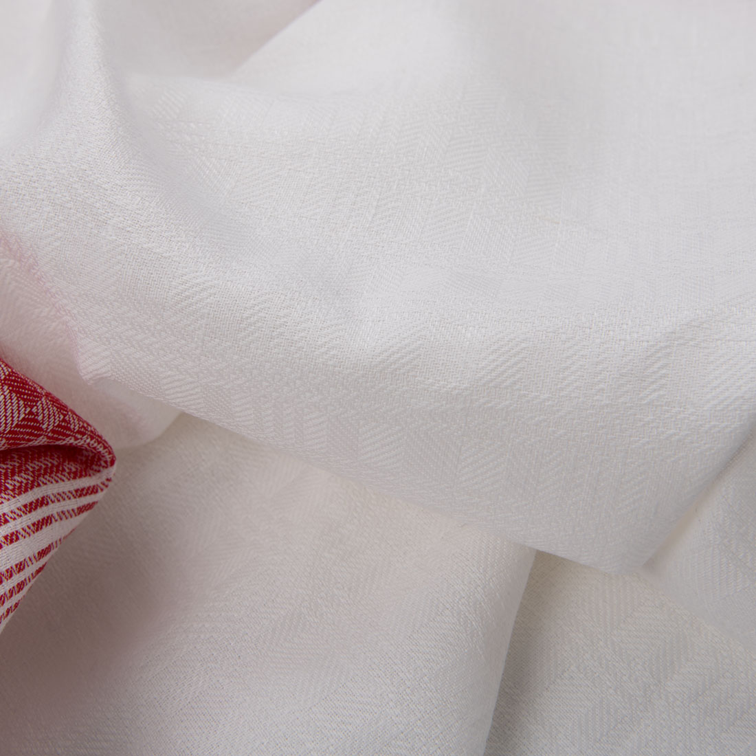 - Väri: kudottu kirkkaan valkoinen ja tulipunainen lanka