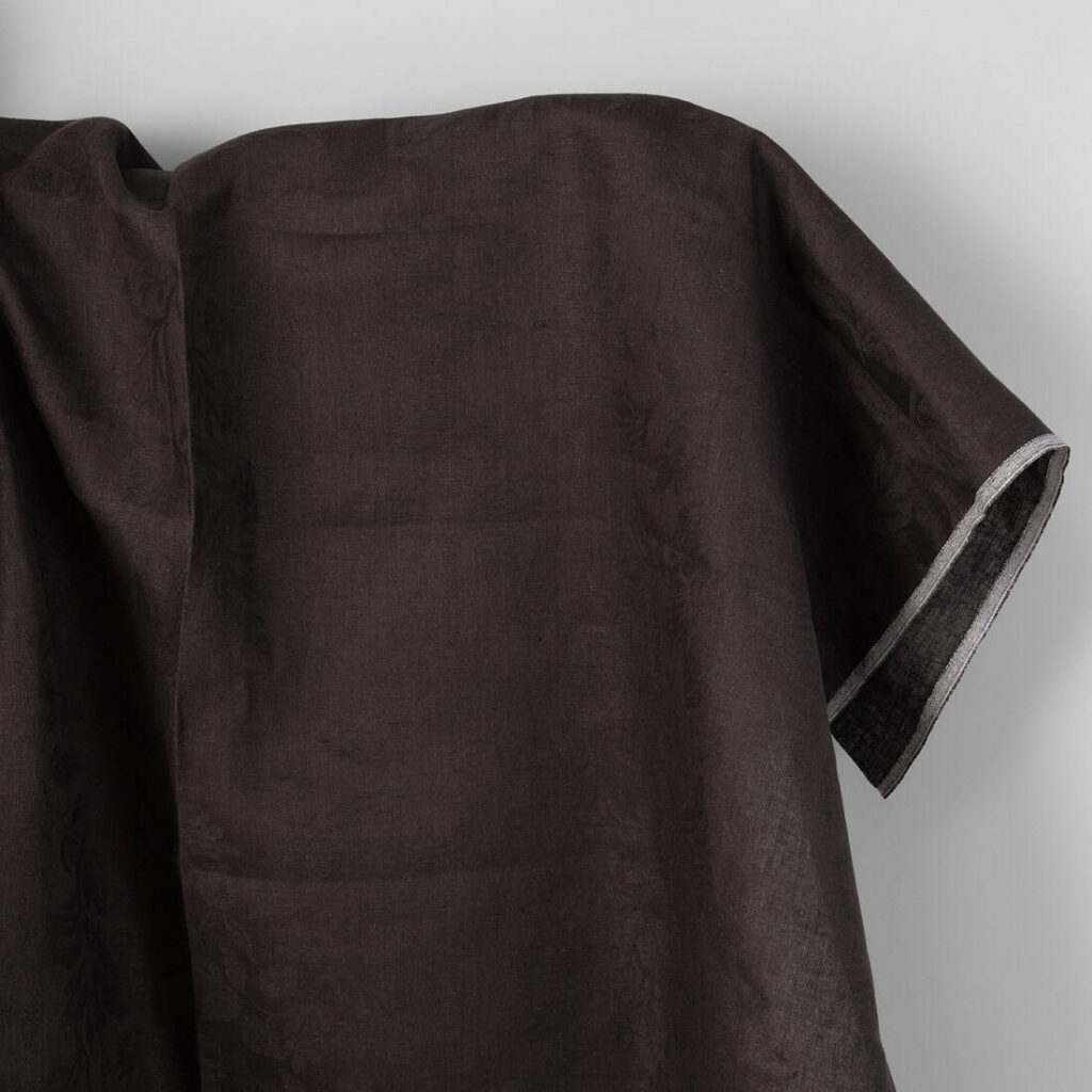Ruskea jacquard-pellavakangas kukkakuviolla
