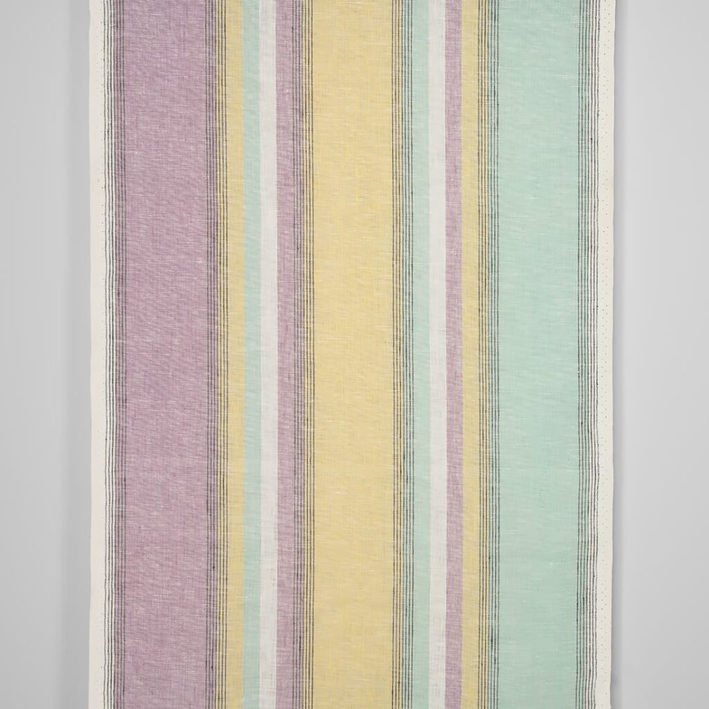 Kapea pellavakangas pastellinsävyisillä moniväriraidoilla