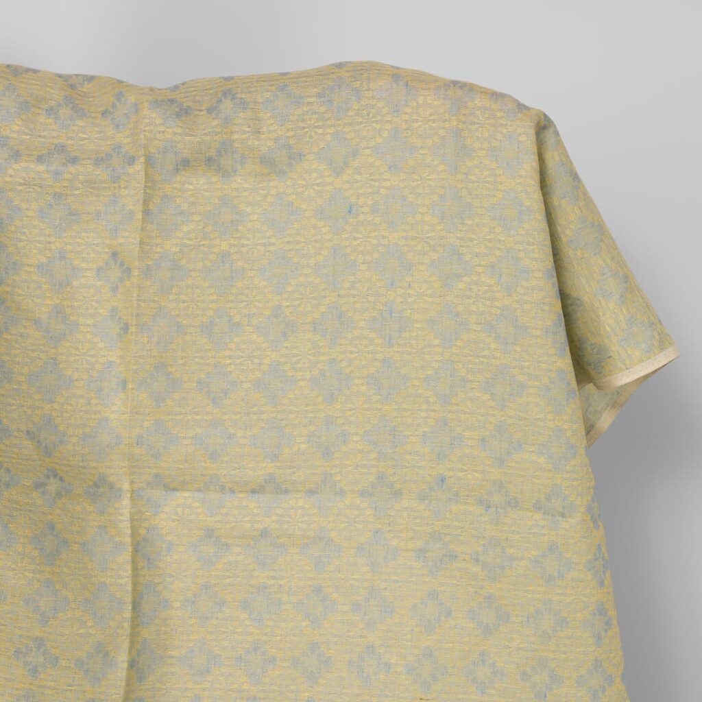 Pellavakangas, vaaleansininen ja keltainen kukkajacquard