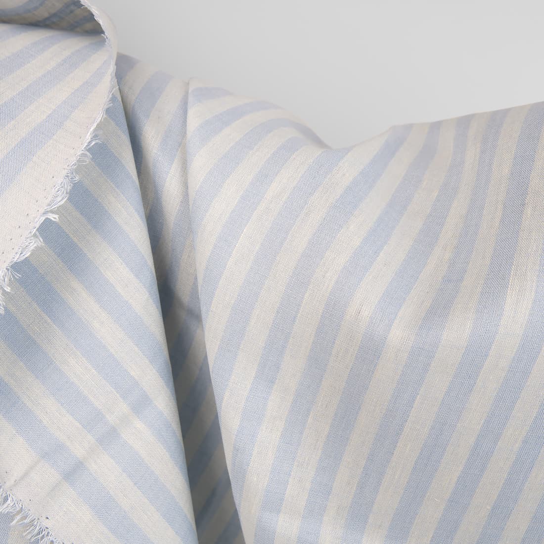/ Pellava kangas vaniljaa ja vaaleansinisiä raitoja