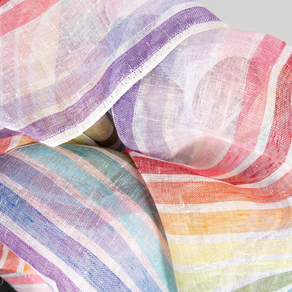 - Väri: sekoitus luonnonvalkoisia (kellertävänvalkoisia), syvänpunaisia, punaisia, oransseja, keltaisia, vaaleanvihreitä, vihreitä, turkooseja, vaaleansinisiä, sinisiä, tummansinisiä, violetteja, laventelin, vaalean liiloja, vaaleanpunaisia värisiä lankoja