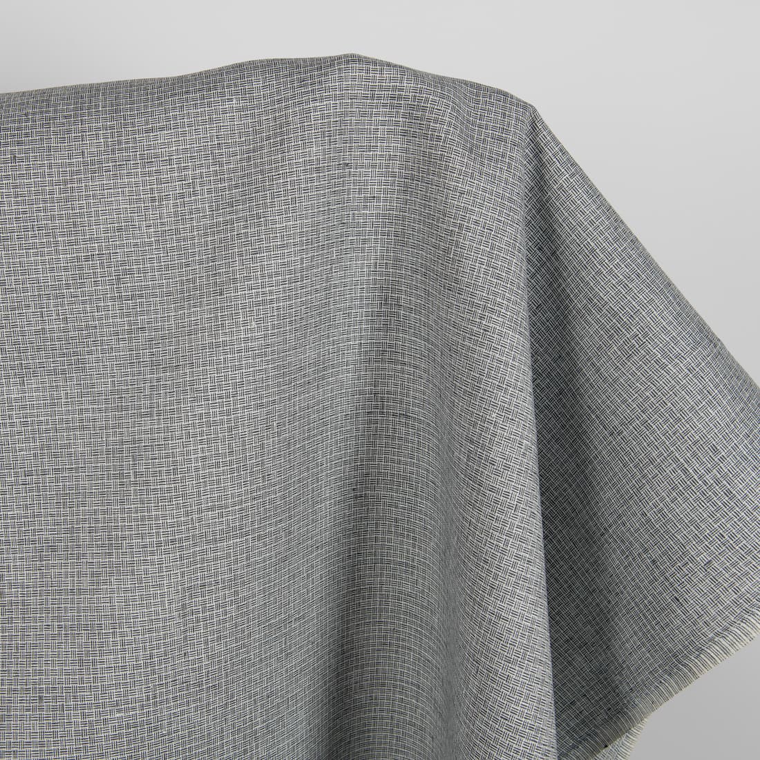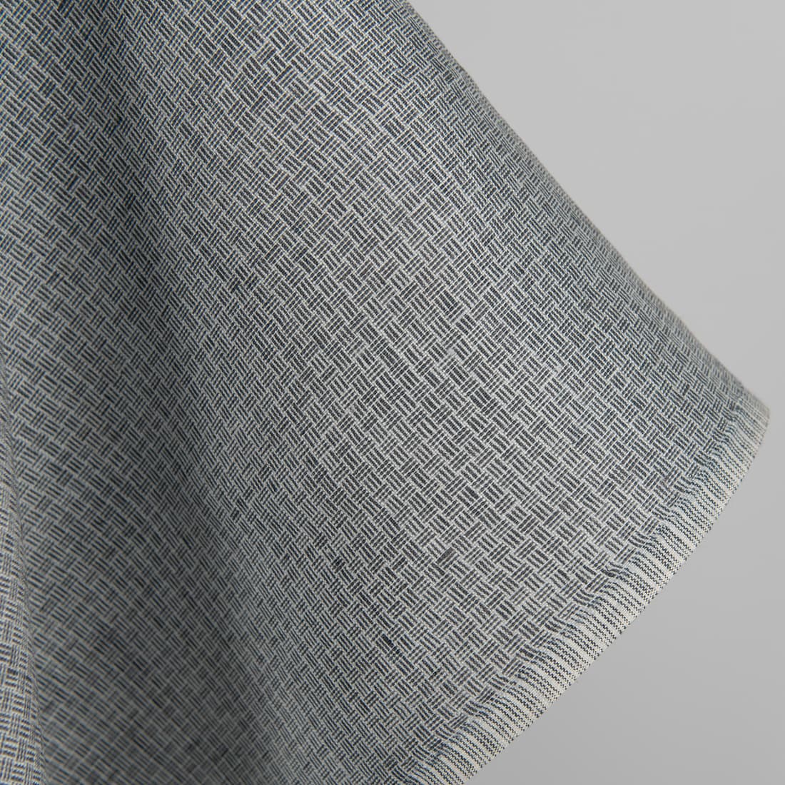 • Pellavakangas kuvioitu antrasiitinharmaa, vaalean siniharmaa, tummansininen ja vaalean sinertävänvihreä lanka, joka on kudottu yhteen