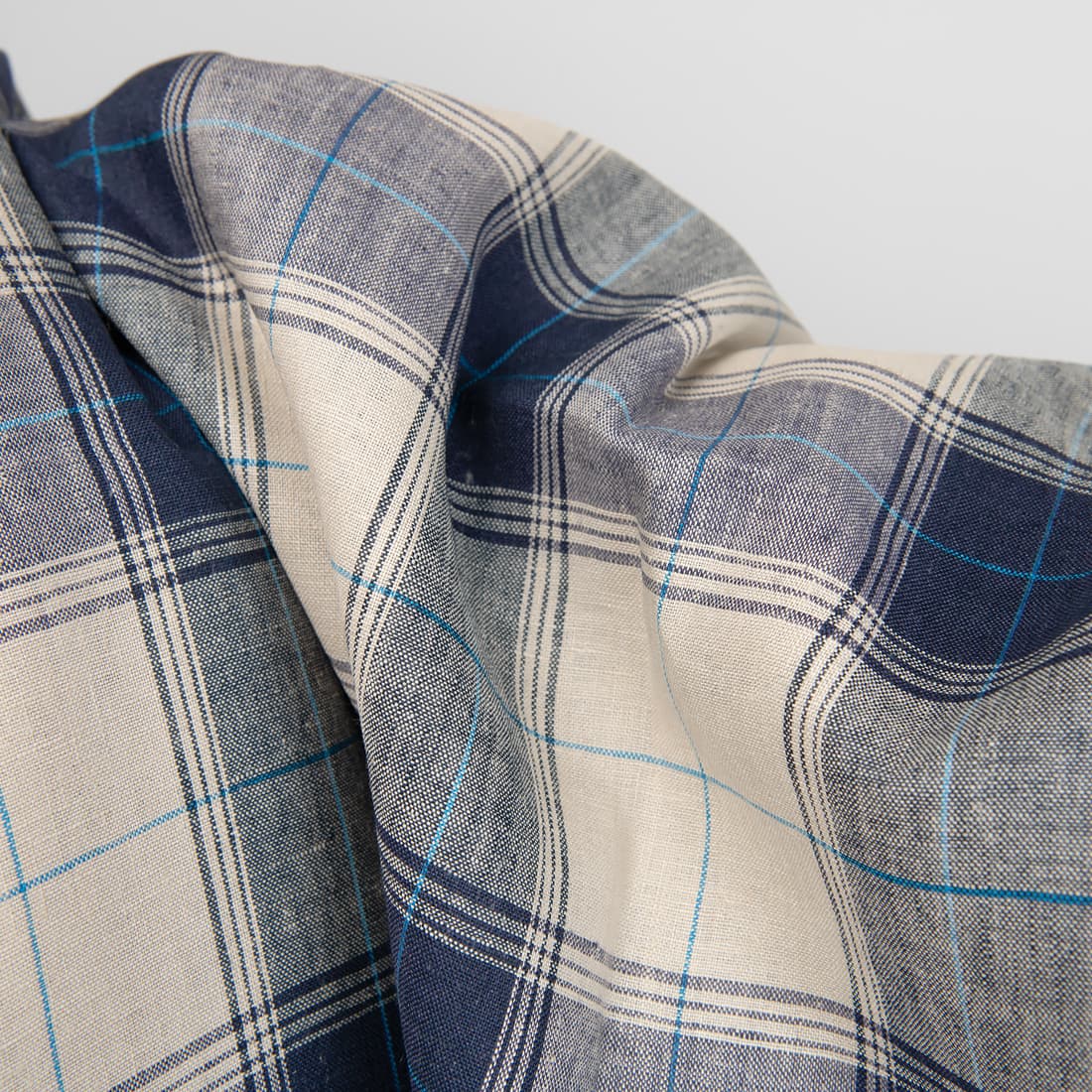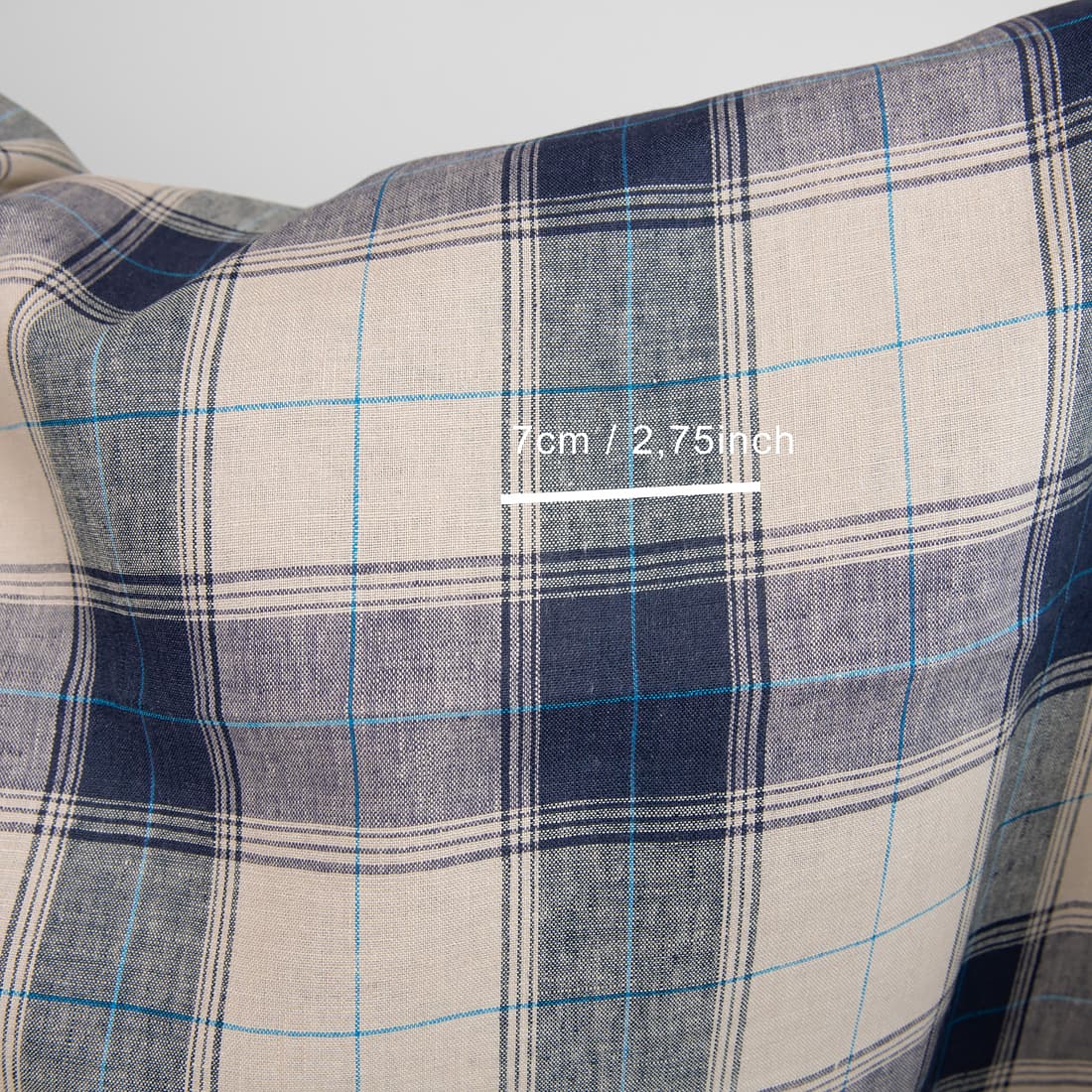 / Pellavakangas jossa on beige ja sininen ruutu