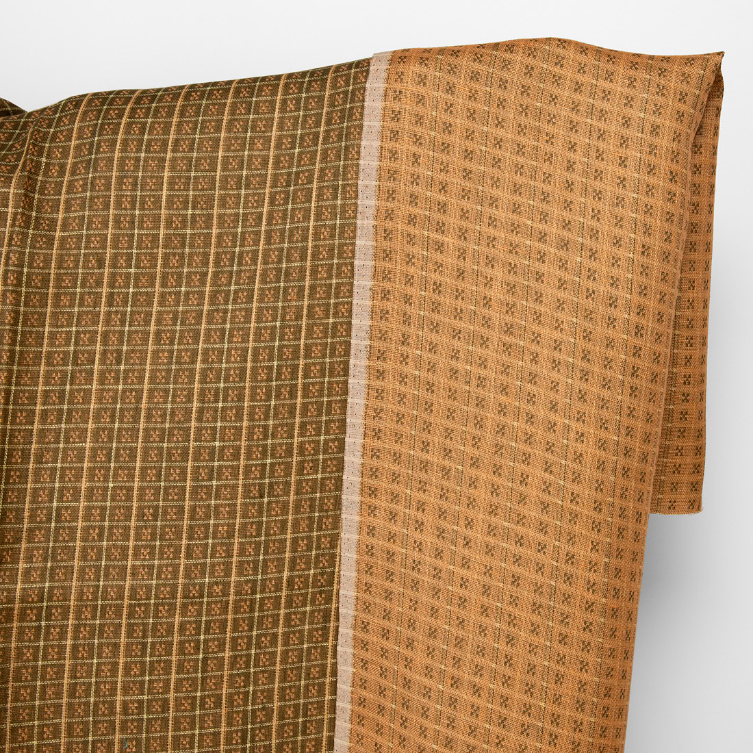 Pellavakangas kaksipuolinen ruskea-saviruudullinen
