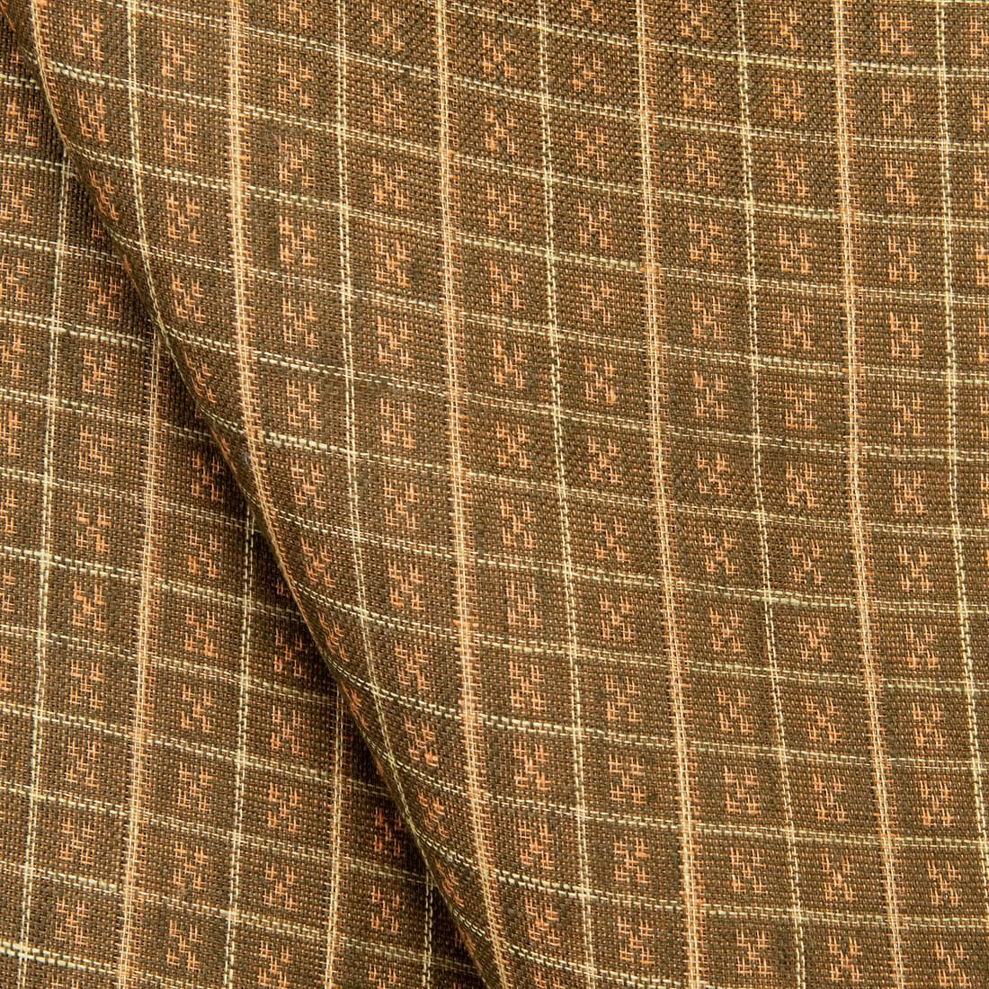 Ruskea pellavakangas vinoneliökuviolla