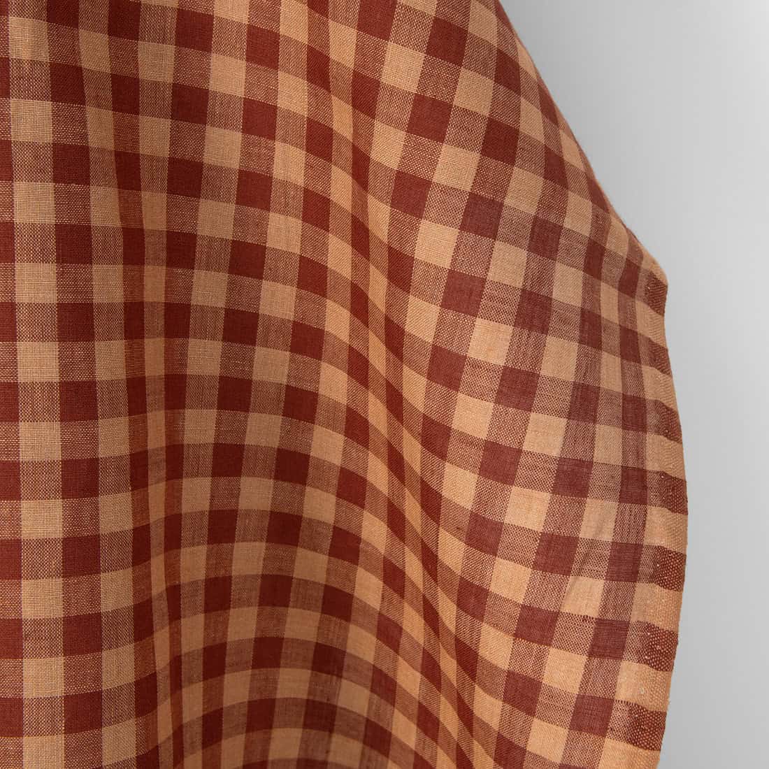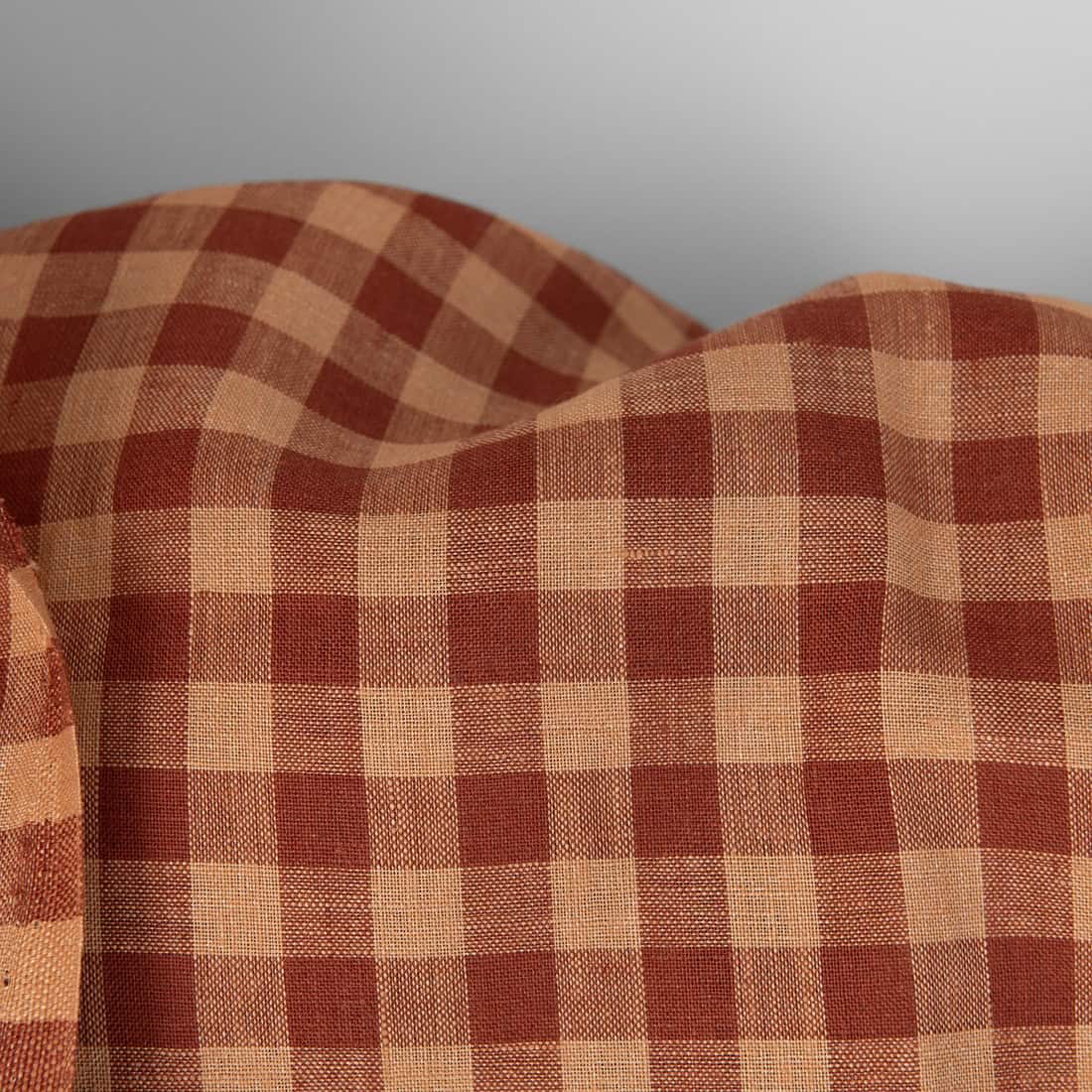 Pellavakangas karamellin ja lämpimän ruskean sävyisillä ruuduilla