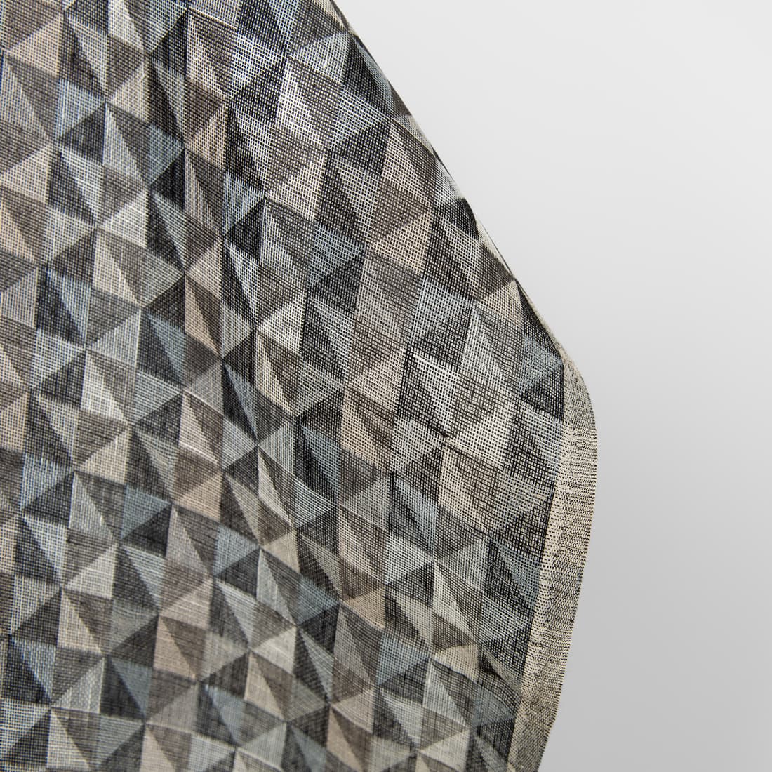Pellavakangas, musta ja harmaa jacquard-kudottu kolmiokuvio
