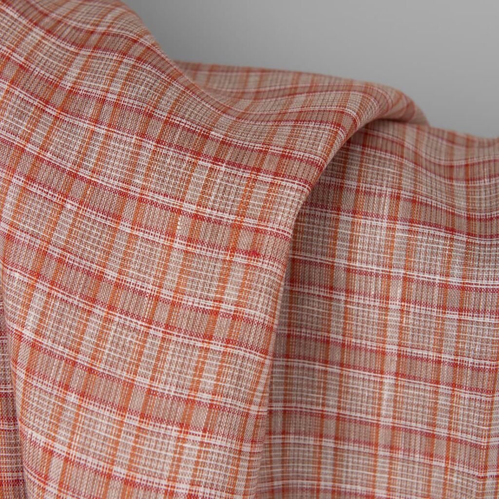 Pellavakangas oranssinpunaisella monivärisellä ruutukuosilla määrä