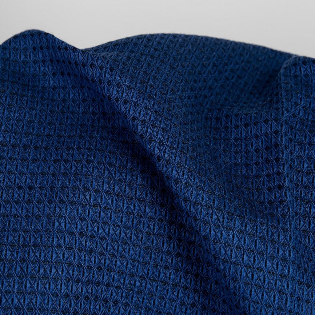 Pellava-villakangas musta tummansinisillä pilkuilla