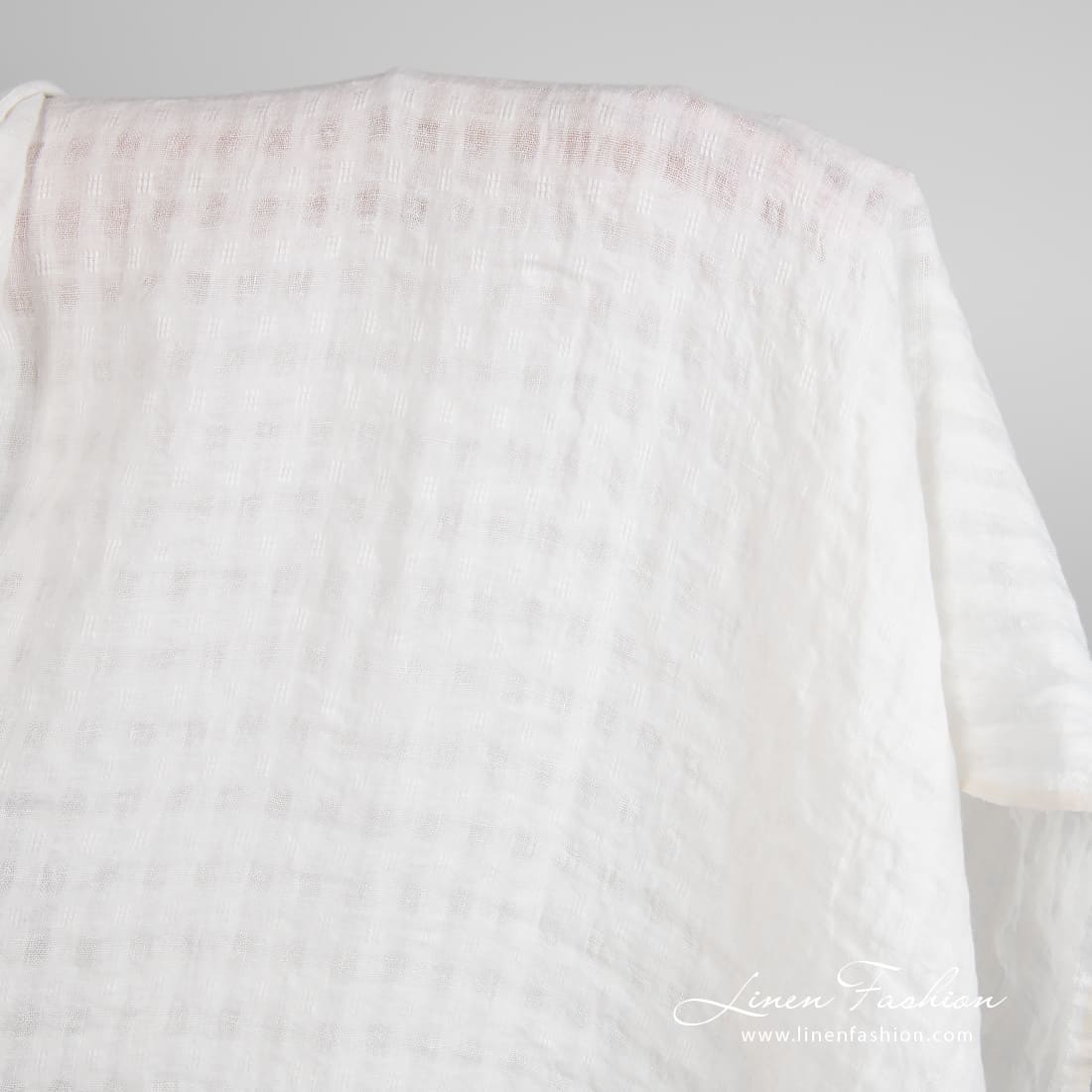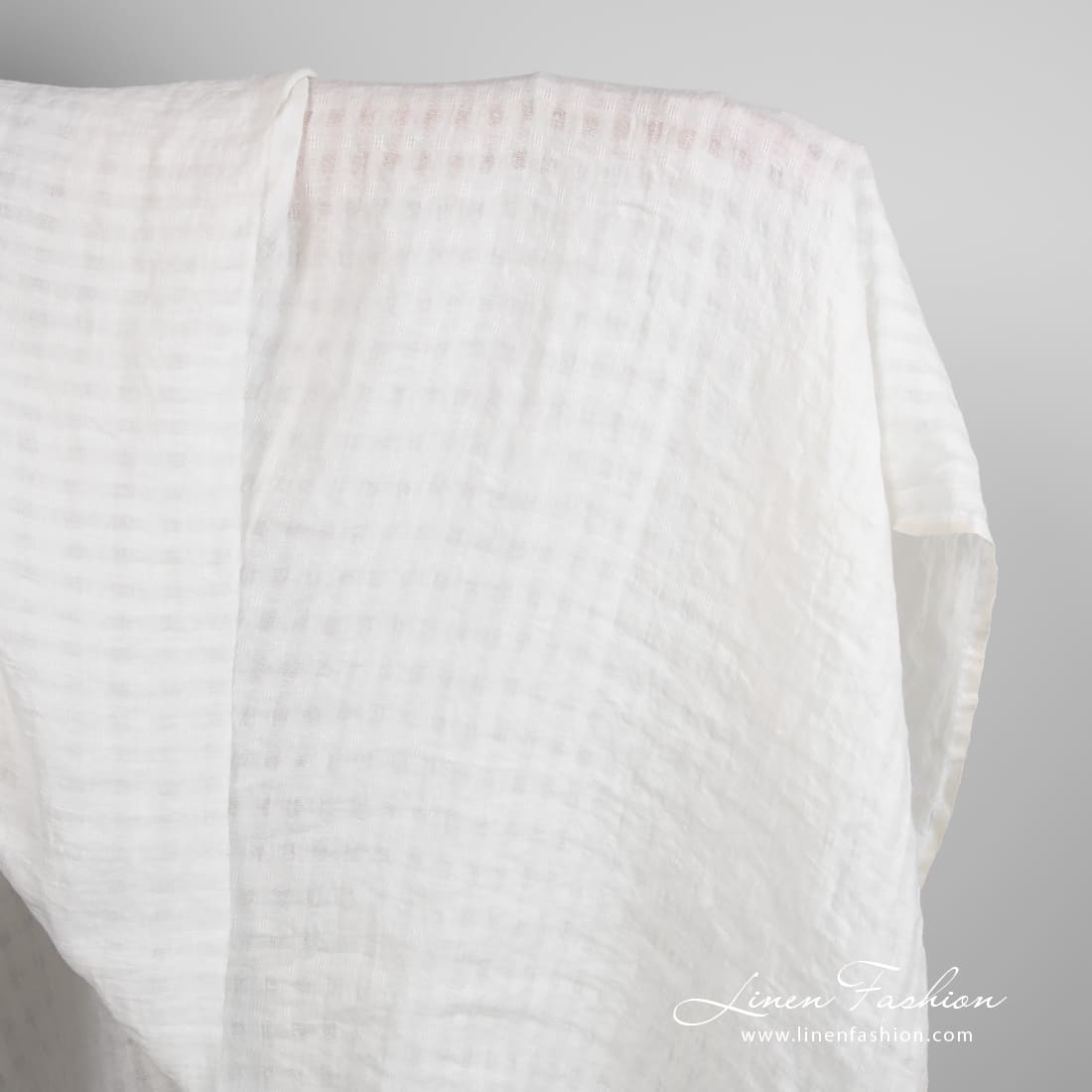 Luonnonvalkoinen pellavakangas läpikuultavin ruuduin pesty