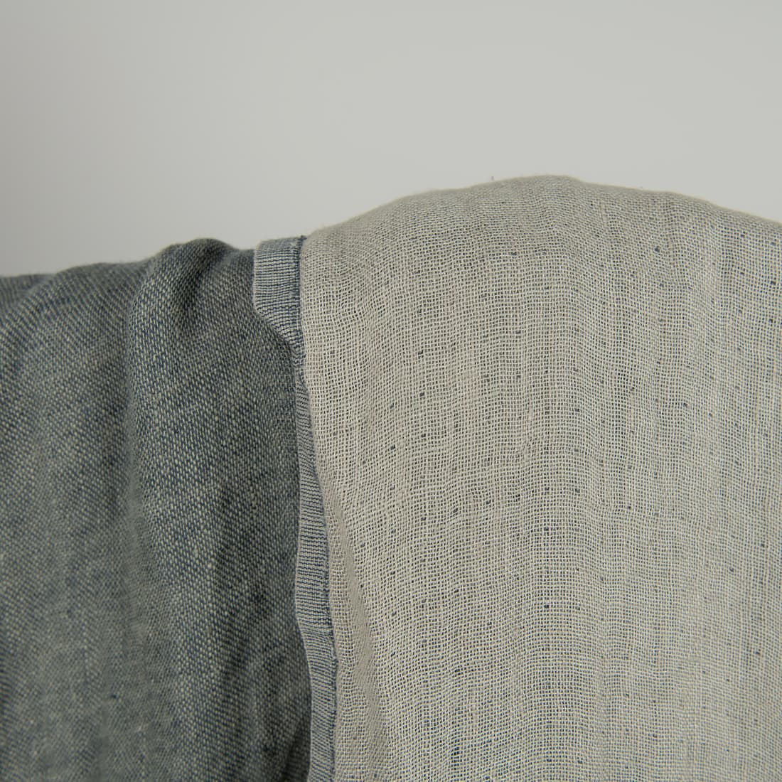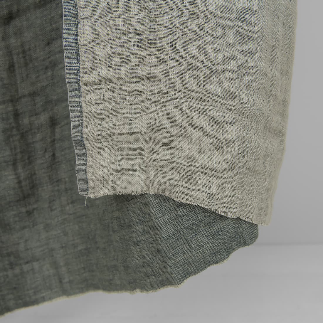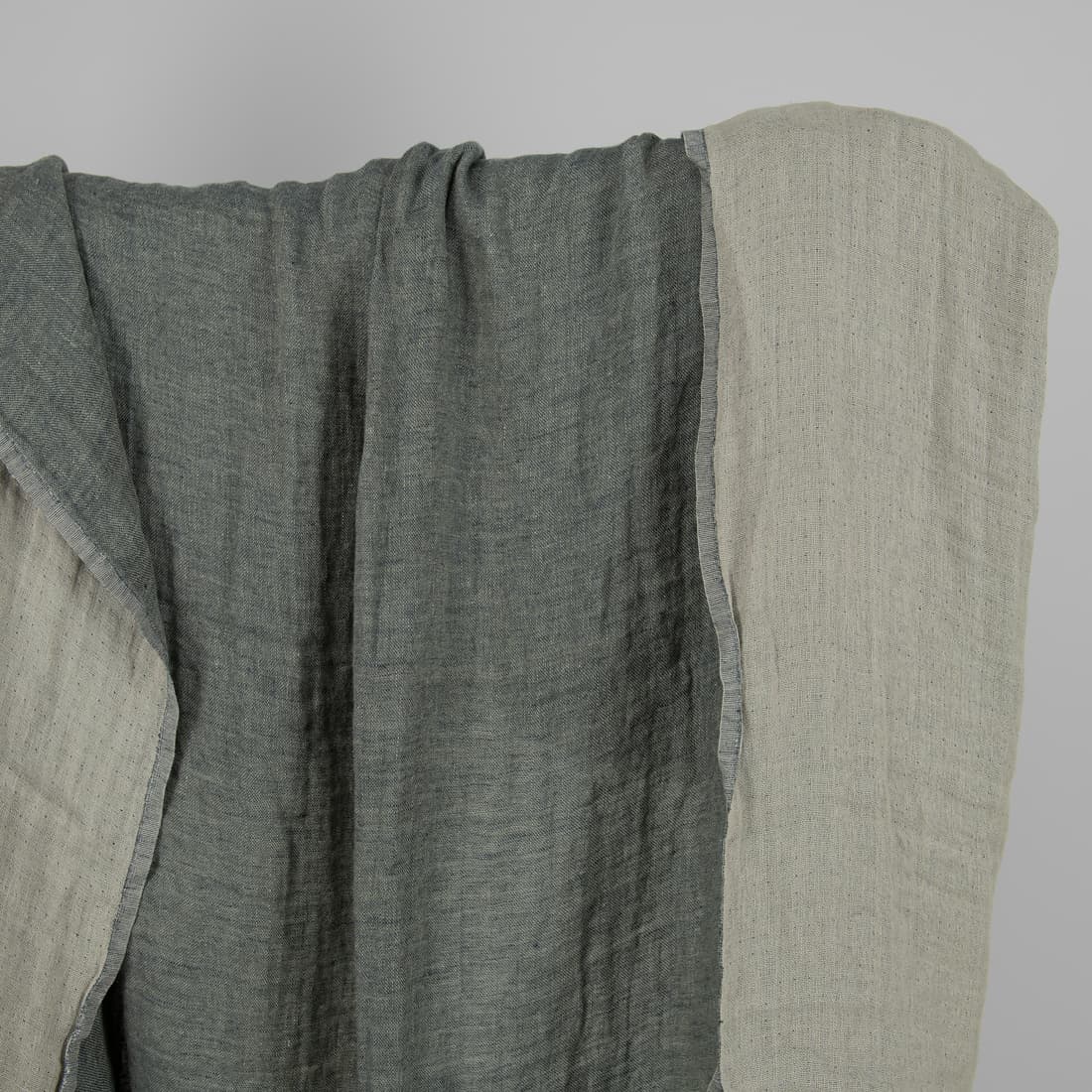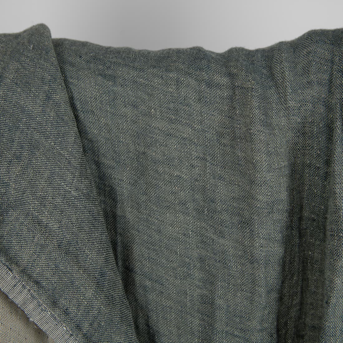 • Pellavakangas kaksipuolinen, beige, vihreänharmaa, keskiharmaa ja tummansininen lanka kudottu yhteen, pesty