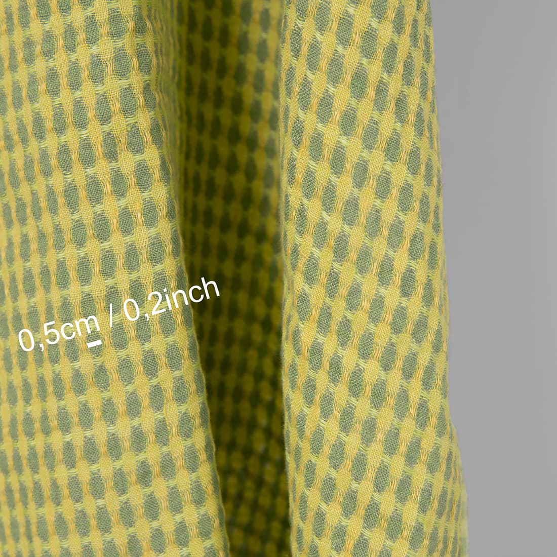 - Väri: vanhanvihreä, vaalea banaaninkeltainen, kelta-vihreä ja omenanvihreä lanka kudottu yhteen