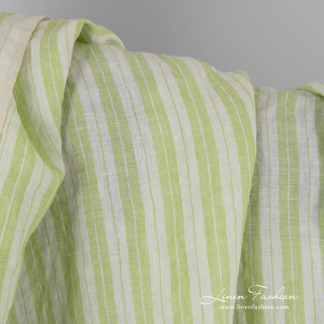Vaaleanvihreä pellavakangas raidoilla, pesty