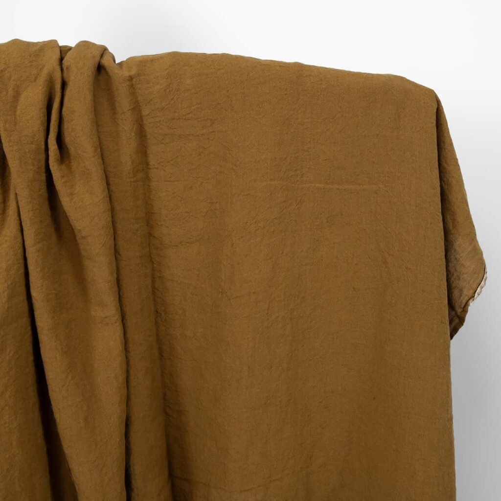 Leveä kullanruskea pesty pellavakangas