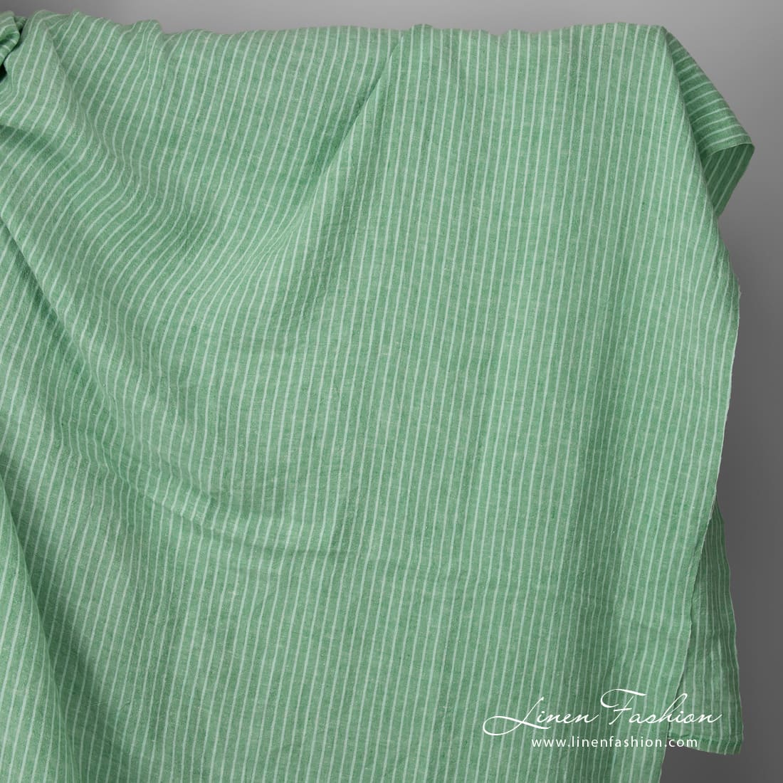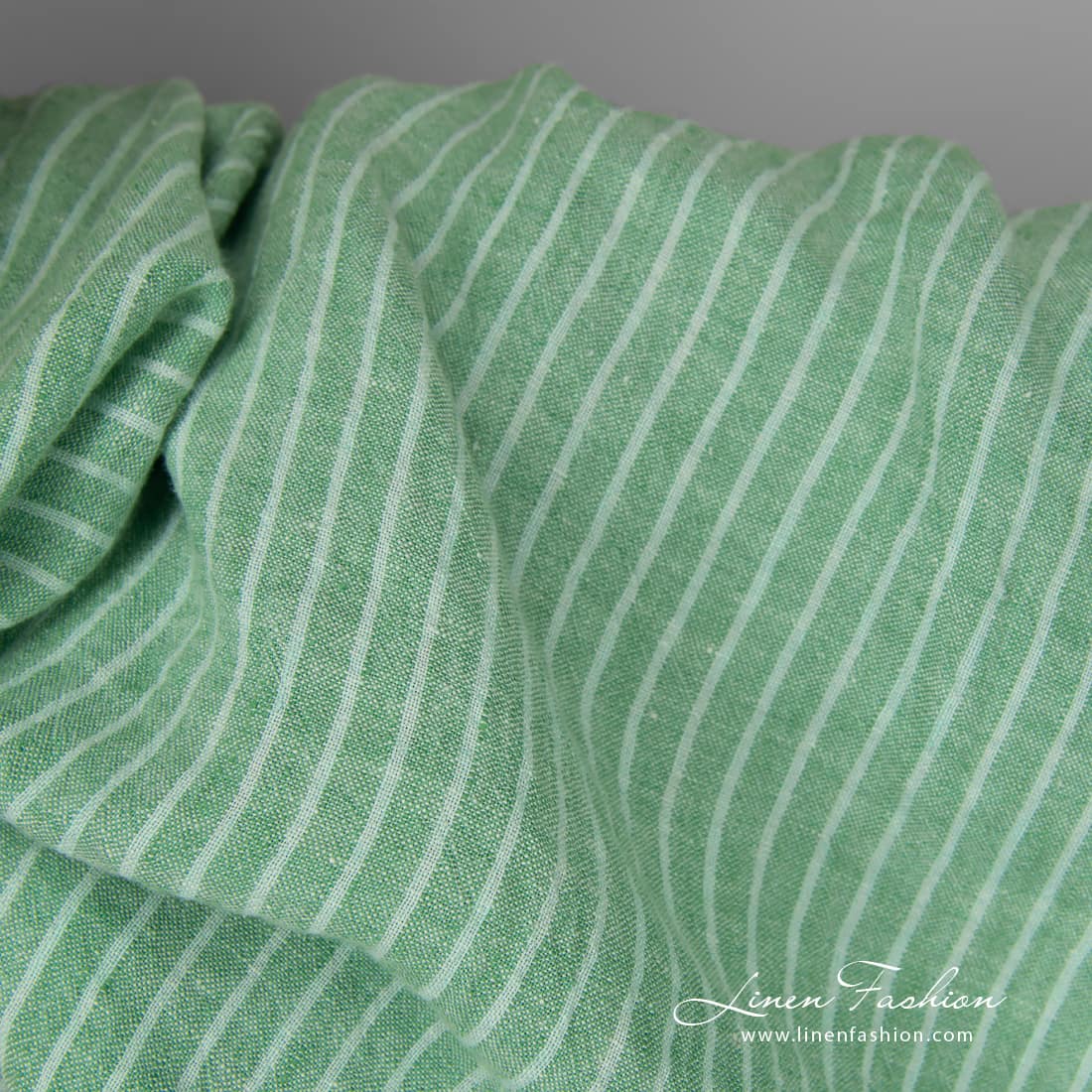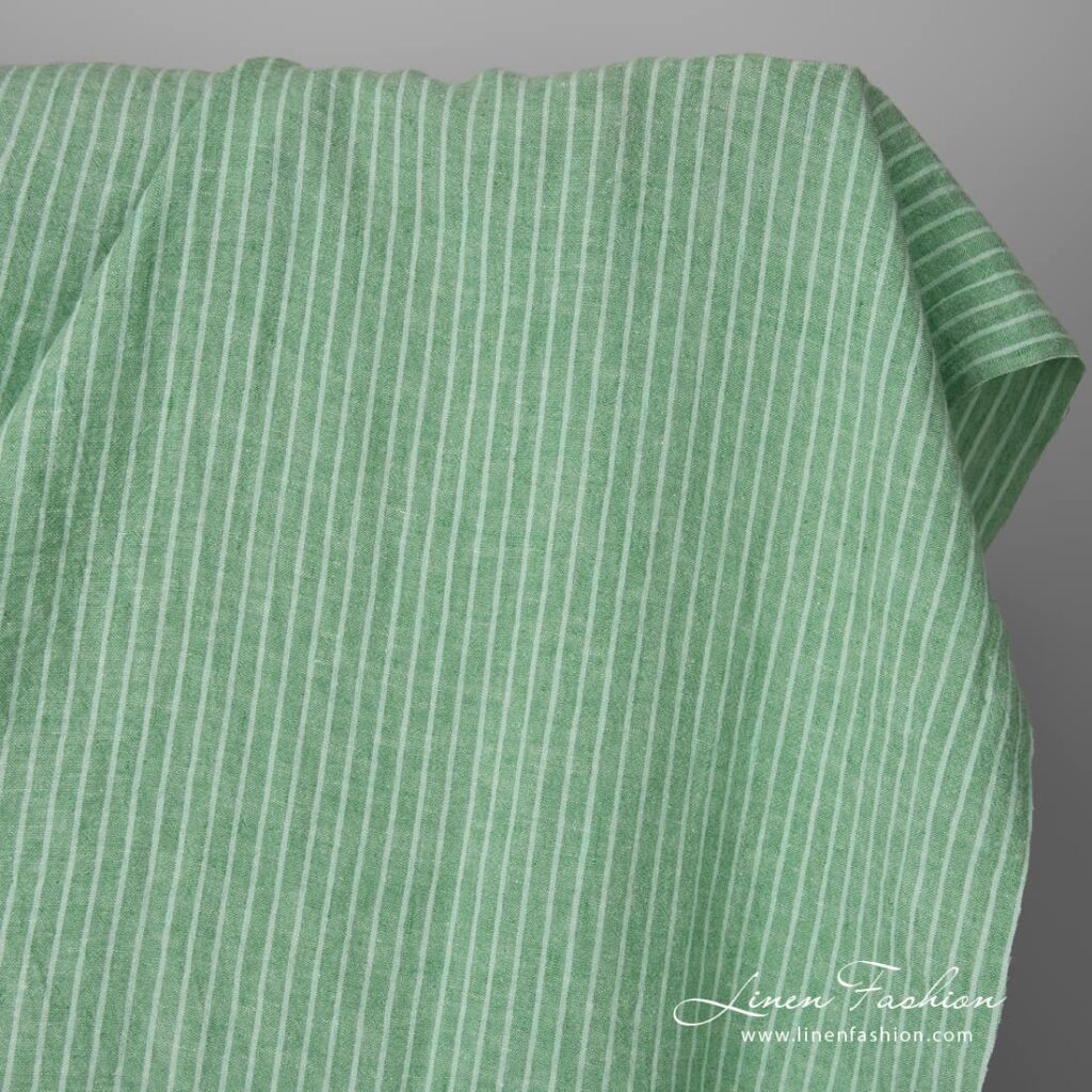 Leveä pesty vihreäraitainen pellavakangas