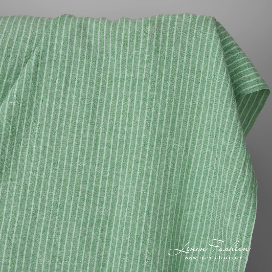 Leveä pesty vihreäraitainen pellavakangas määrä
