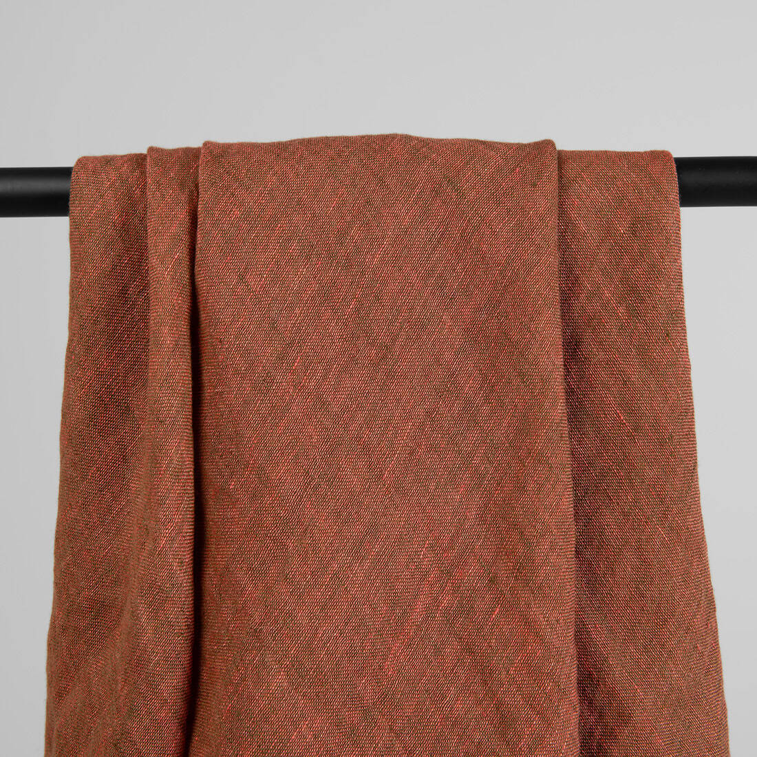 • COMBO vihreä-punertava pellava kaulaliina, 2cm pitkät uurretut hapsut kaikilla sivuilla