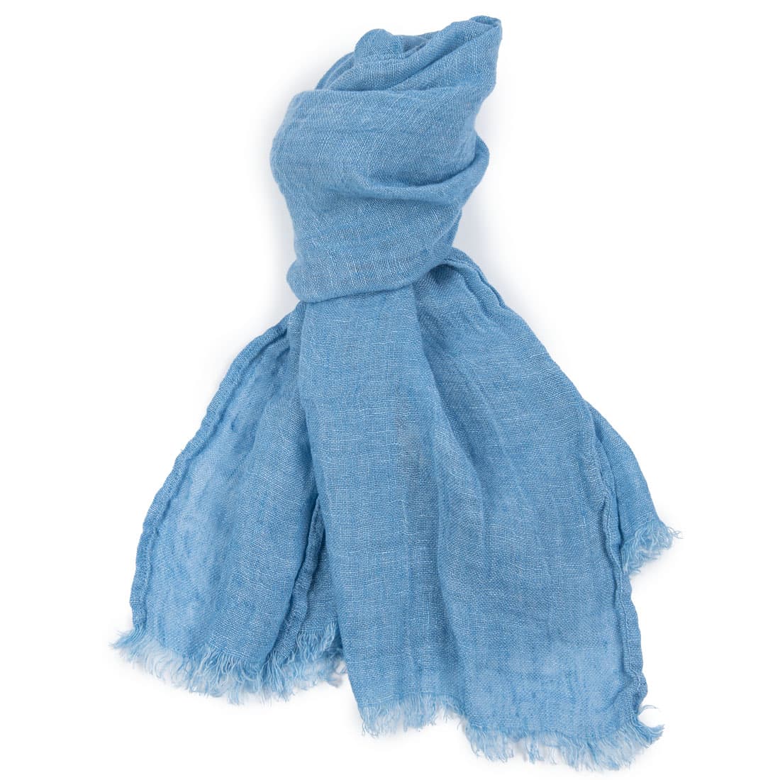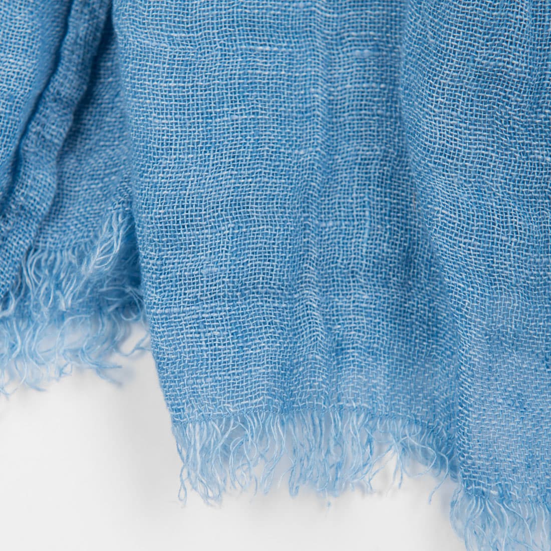 • FINO vaaleansininen pellavahuivi, jonka lyhyissä reunoissa on 2cm hapsut