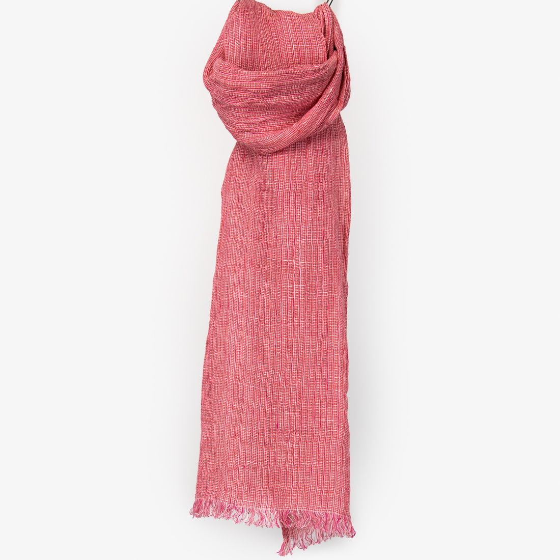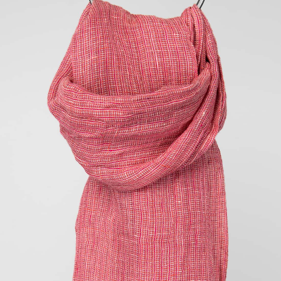 • Vaaleanpunainen pellavahuivi pienet ruudut