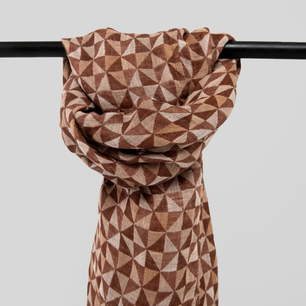 - Kuosi: kaksikerroksinen jacquard geometrisella kolmiokuviolla