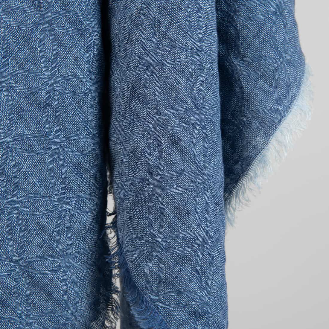- Väri: merensininen ja vaaleansininen lanka kudottu yhteen