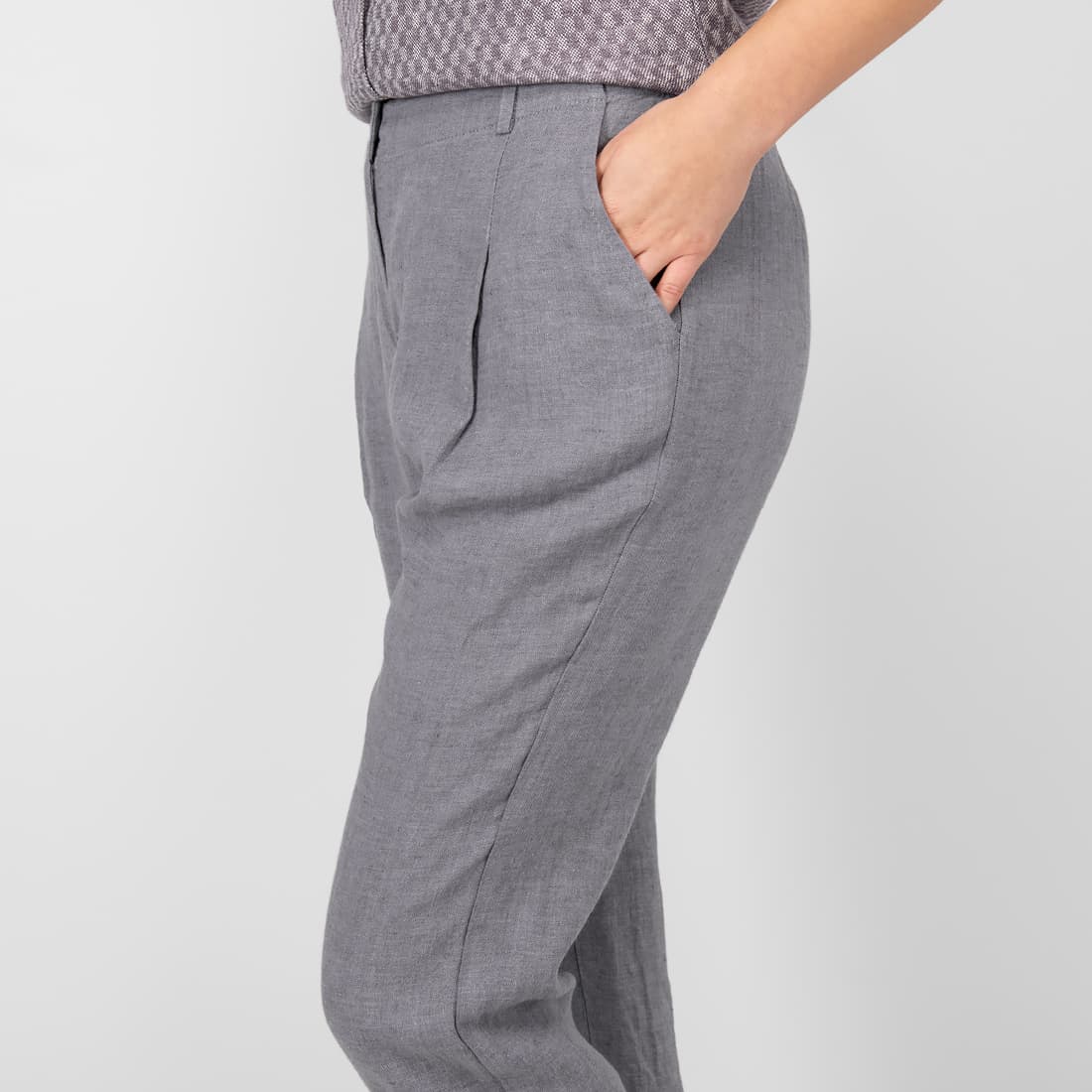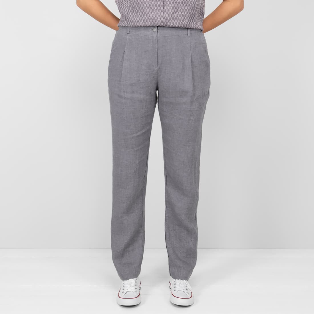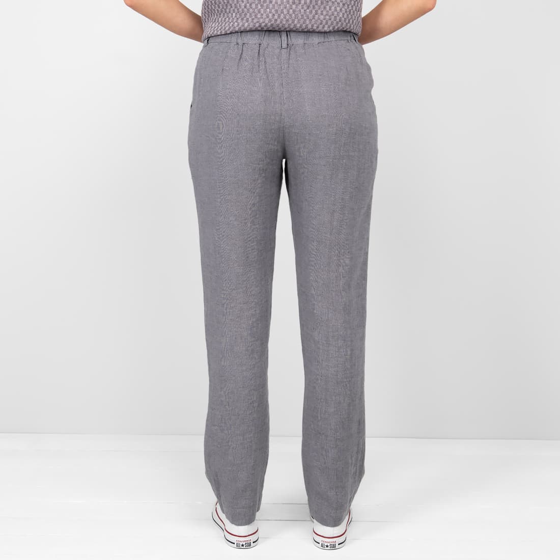 • CALDI pellavahousut tummanharmaat, suora, väljä siluetti
