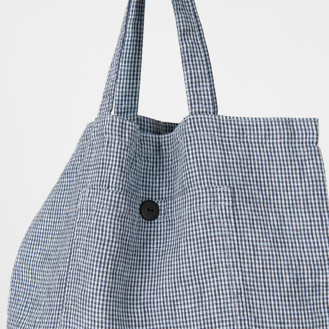 Yksityiskohdat: jossa on tasku ulkopuolella. Ostoskassi voidaan pakata pieneksi paketiksi napin ja silmukan avulla. Kahvojen pituus 76cm.