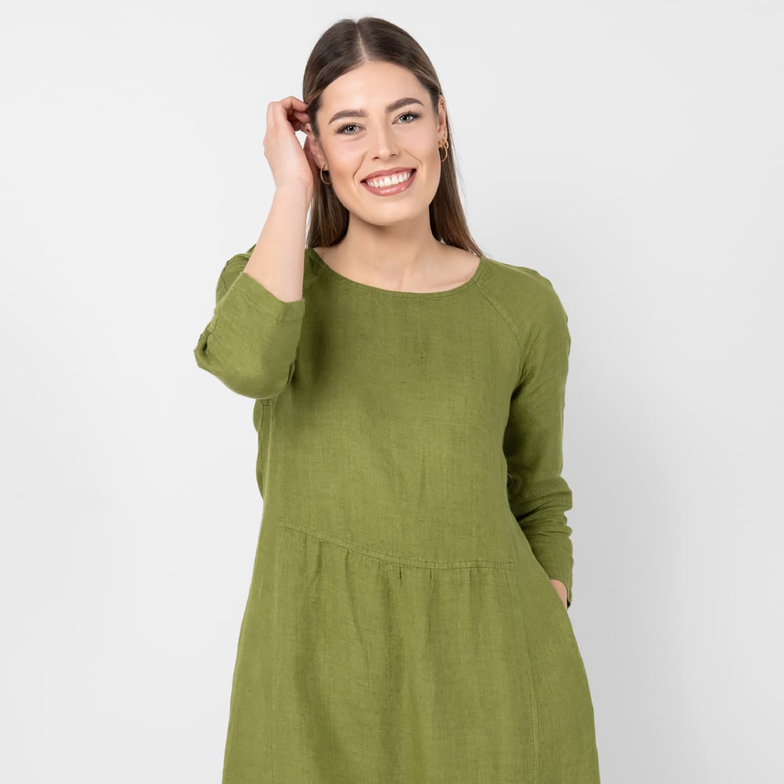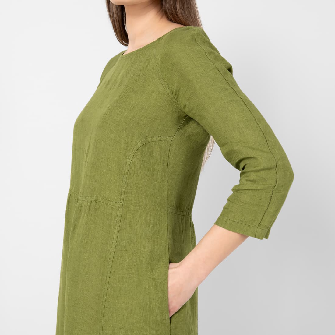 • DELFINA vihreä pellavamekko, 3/4 hihat