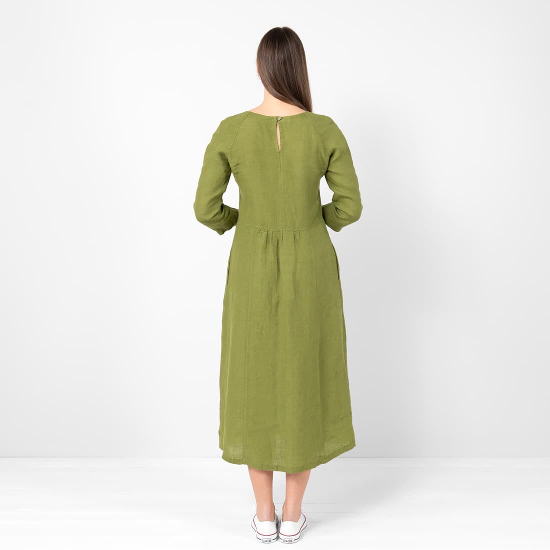 • DELFINA vihreä pellavamekko, 1-nappikiinnitys takana